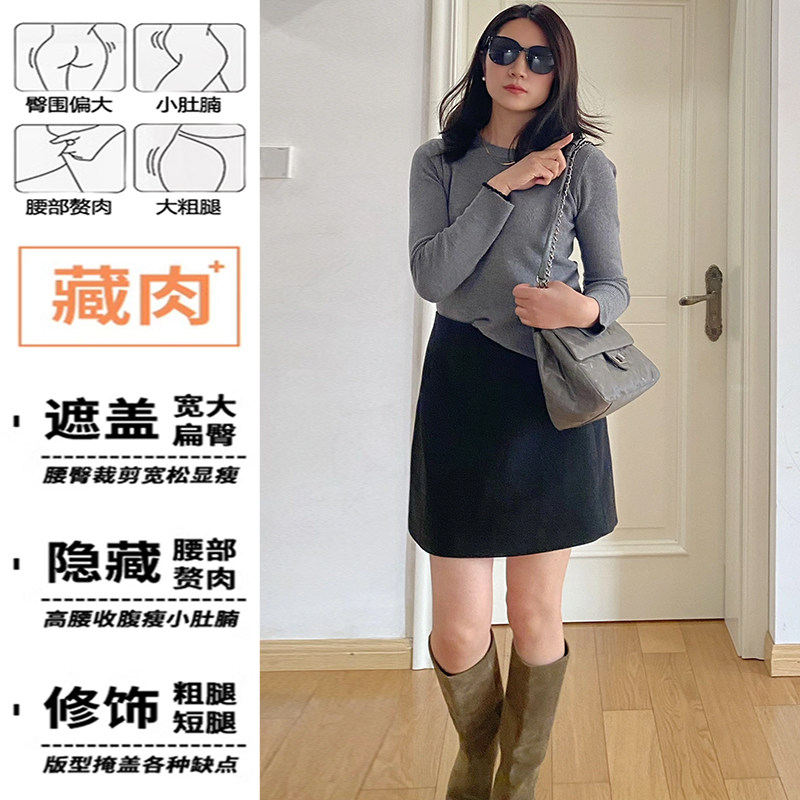大码黑色西装半身裙女2026春季中长款A字裙遮肚高腰显瘦包臀短裙