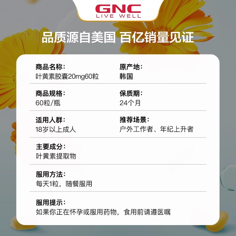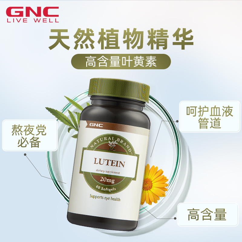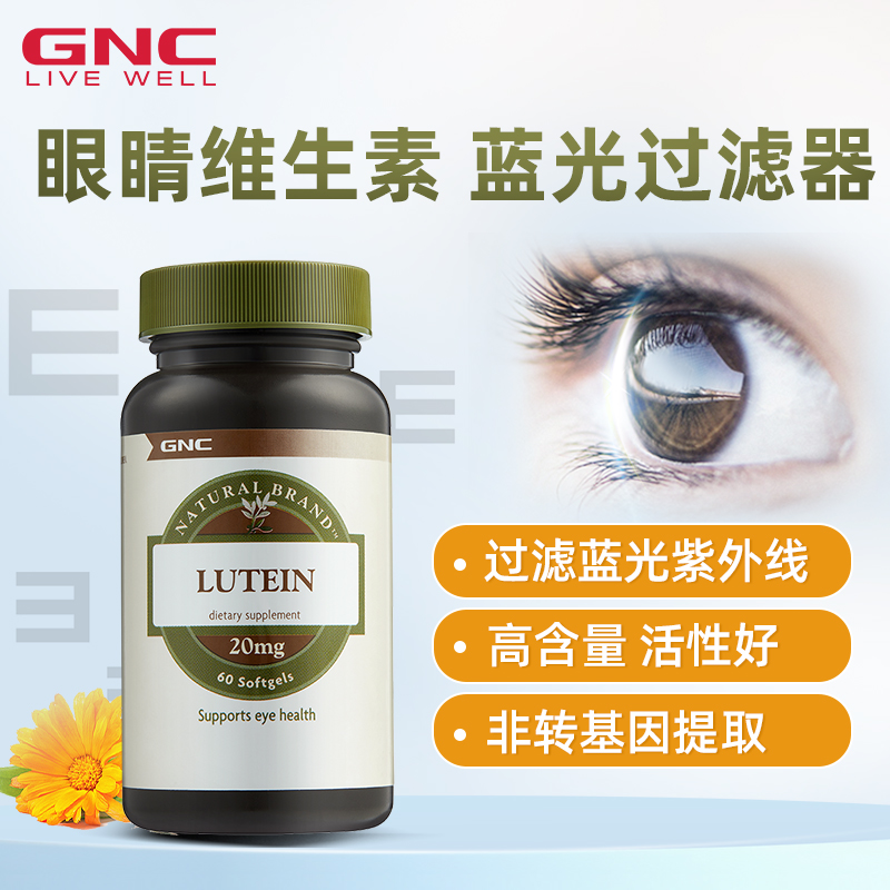 GNC健安喜叶黄素软胶囊20mg60粒保护视力眼酸涩
