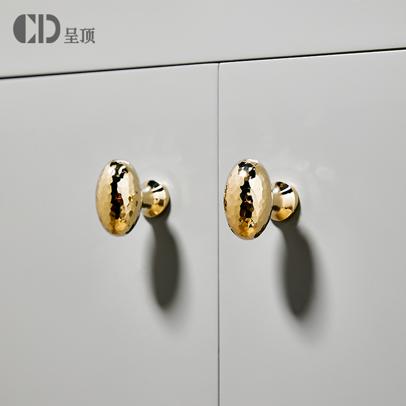 手工锤纹鸽子蛋法式黄铜衣柜门拉手把手现代简约抽屉金色银色欧式