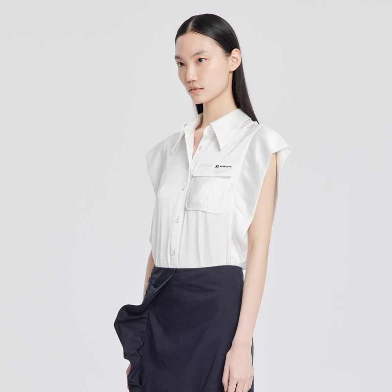 XG/雪歌XJ221023A251无袖翻领白色衬衫时尚夏季新款直筒上衣女装