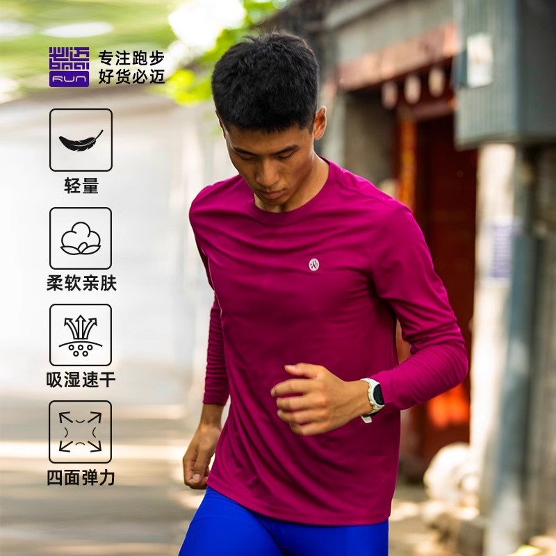 必迈圆领速干跑步长袖上衣男女
