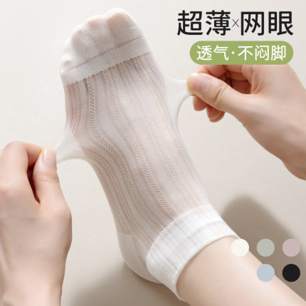 袜子女短袜夏季薄款水晶丝袜防勾丝网眼无骨冰丝凉感夏天中短筒袜