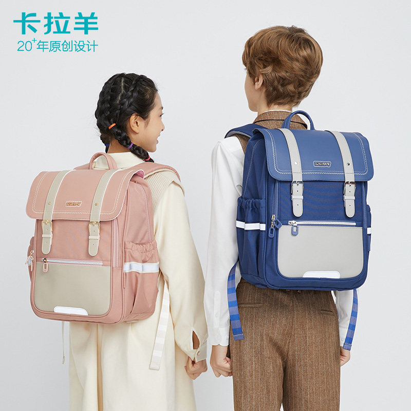 卡拉羊防下坠书包男初中学生五到六年级小学生女护背减负双肩背包