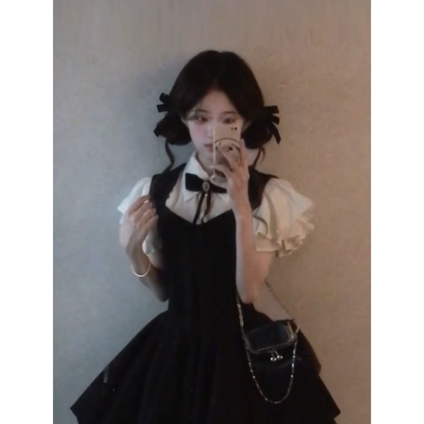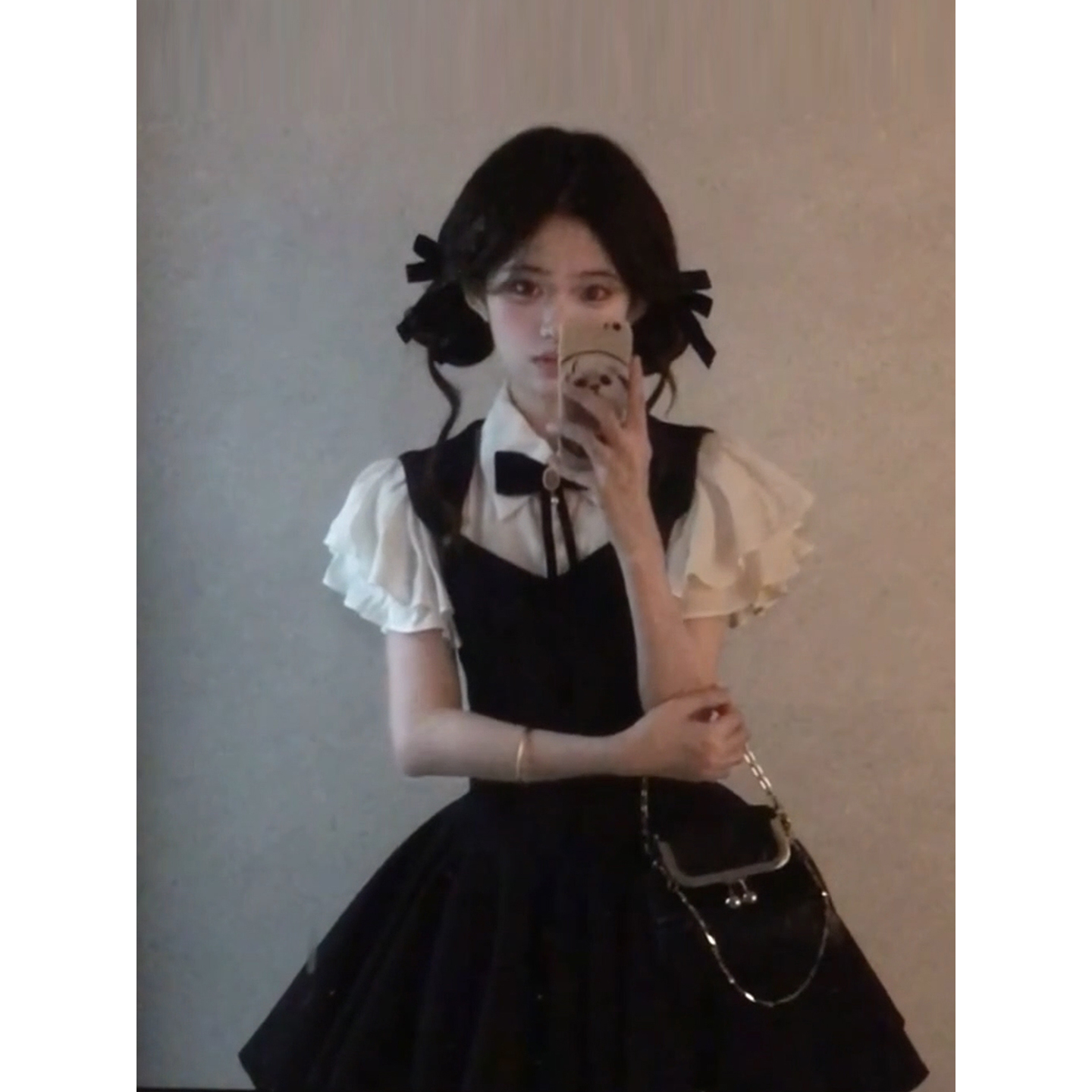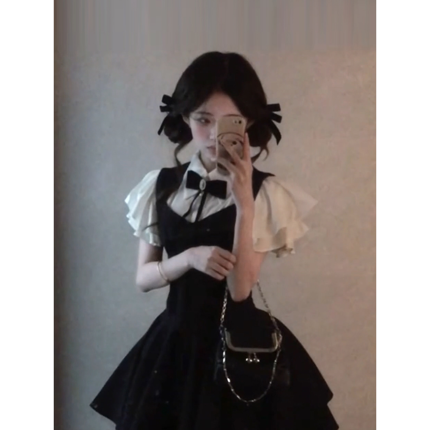 XZY 微胖法式千金风掐腰黑色无袖连衣裙女25年夏内搭白色衬衫套装