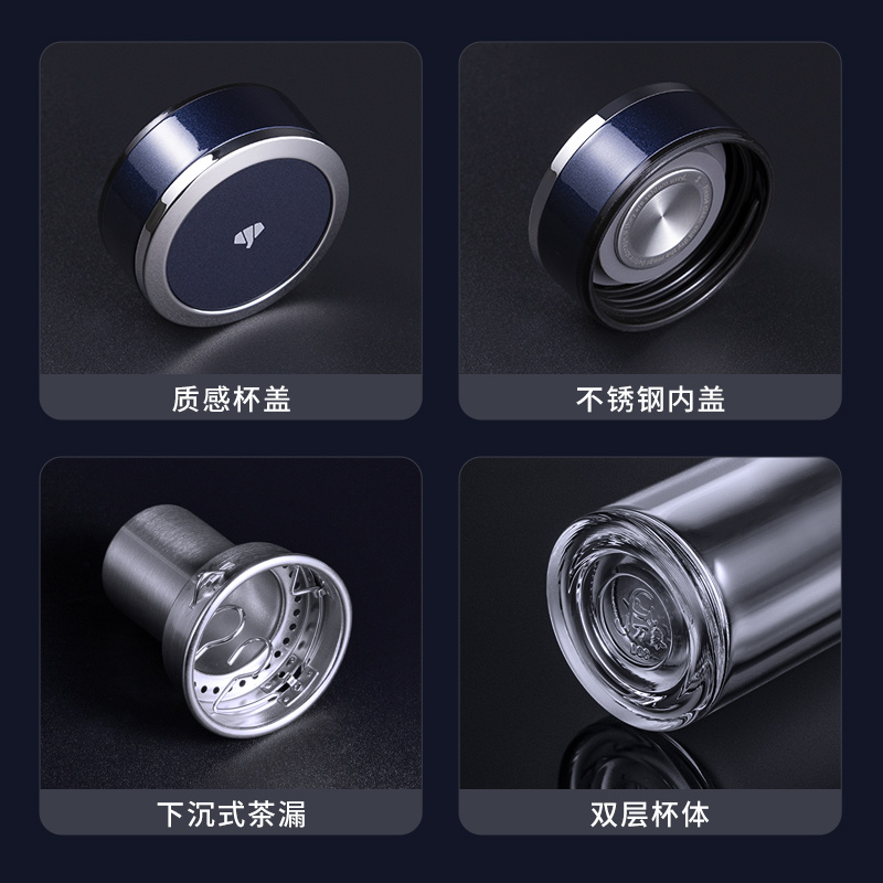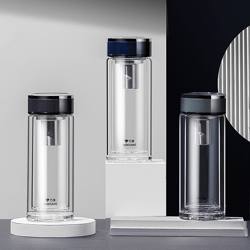 万象双层超大玻璃杯男女士加厚创意带盖家用便携水杯礼盒高档杯子
