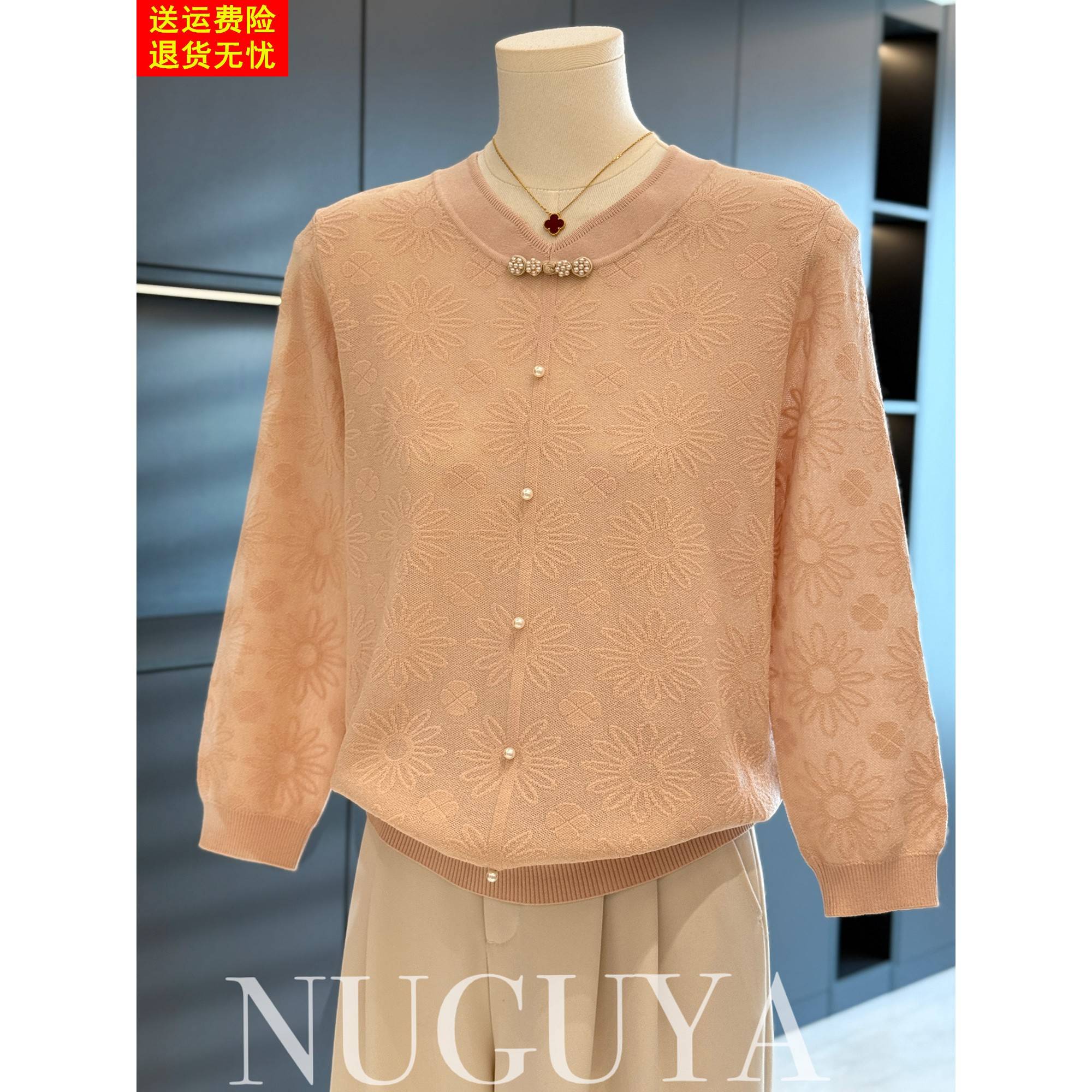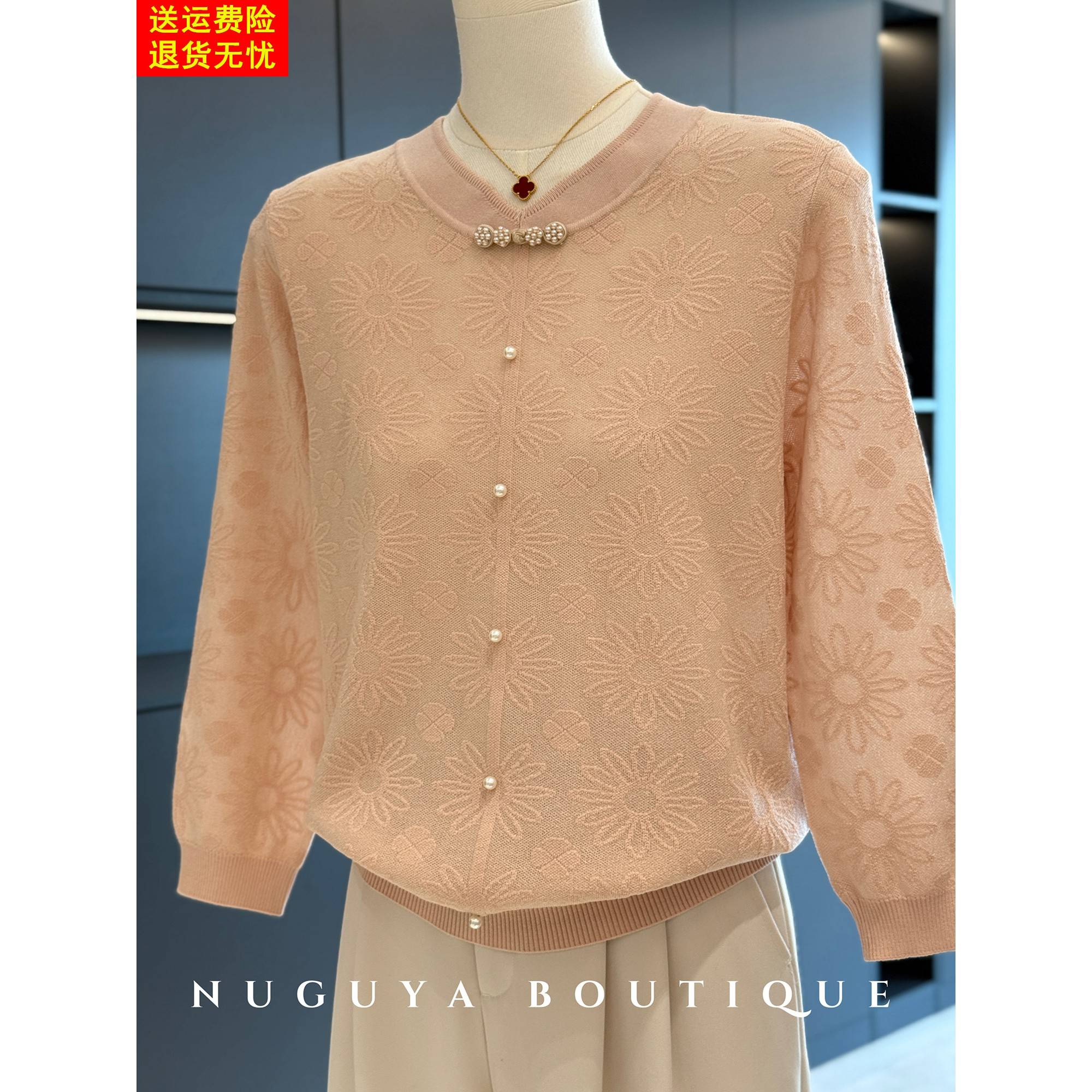 中国风妈妈装雪纺针织衫女秋装新款上衣气质打底衫百搭中老年小衫