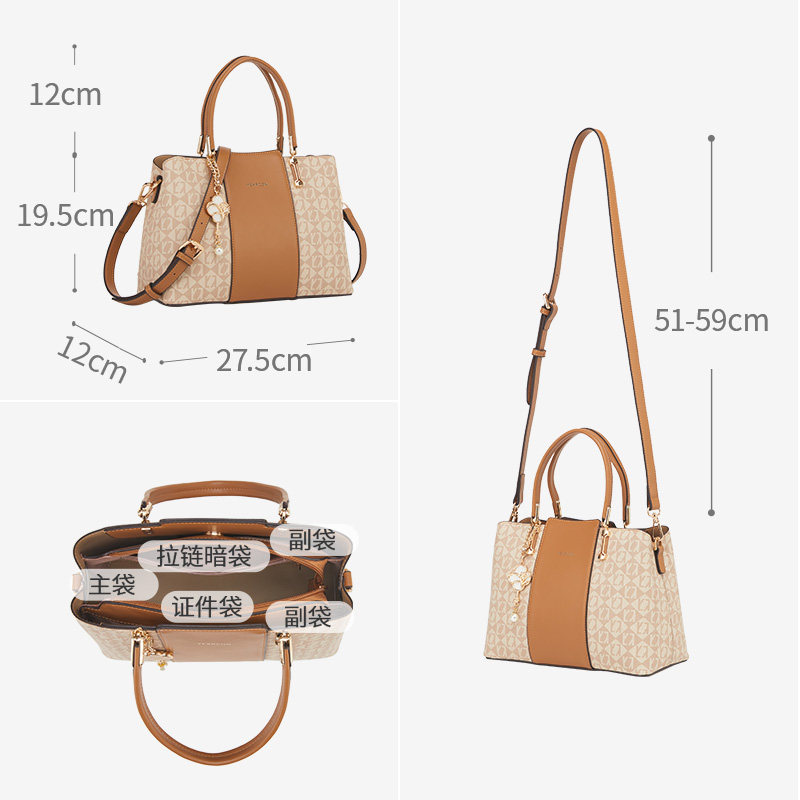 手提包斜挎意尔康托特包老花撞色