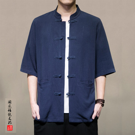 亚麻衬衫男短袖夏季中式唐装男款高端中老年男装居士服中国风上衣