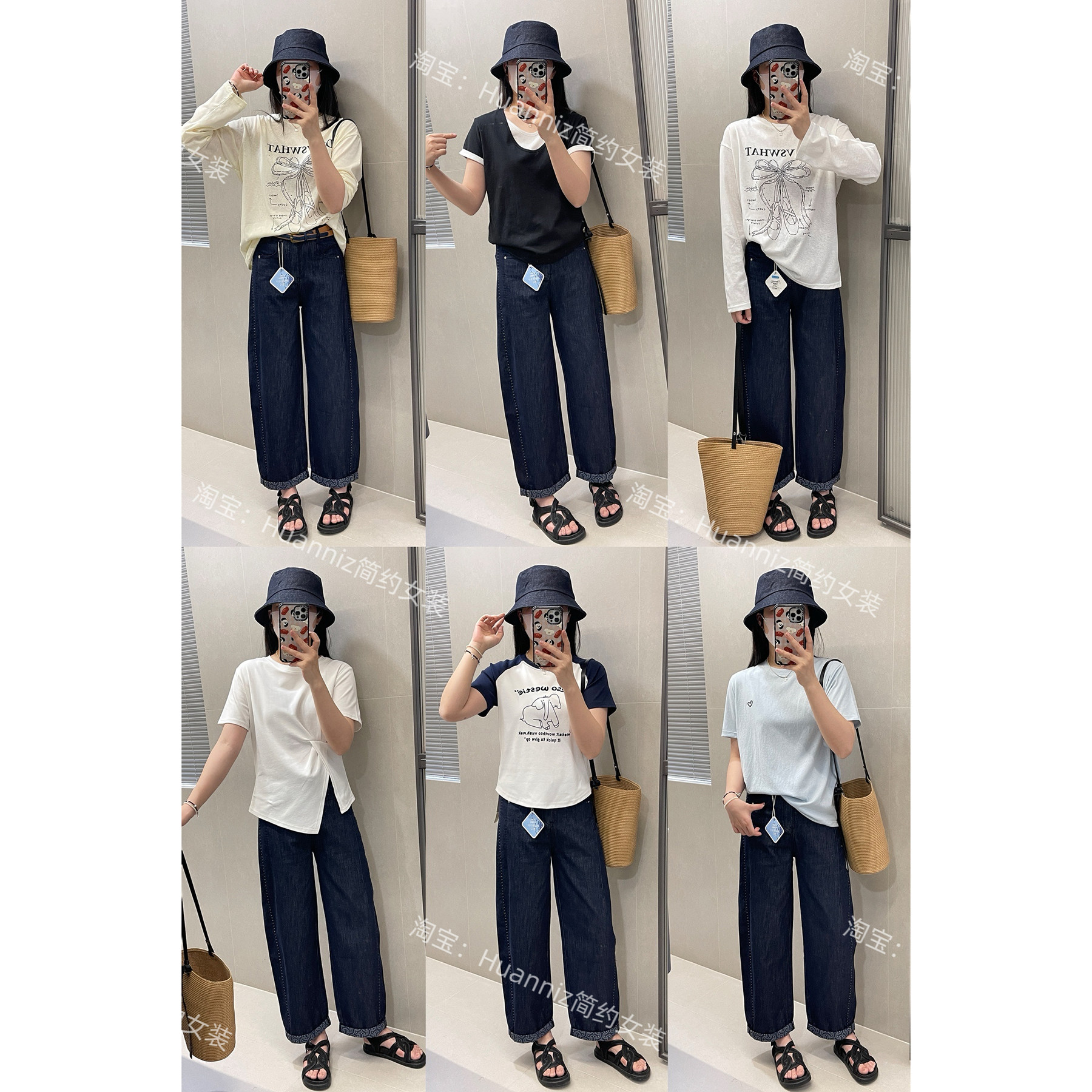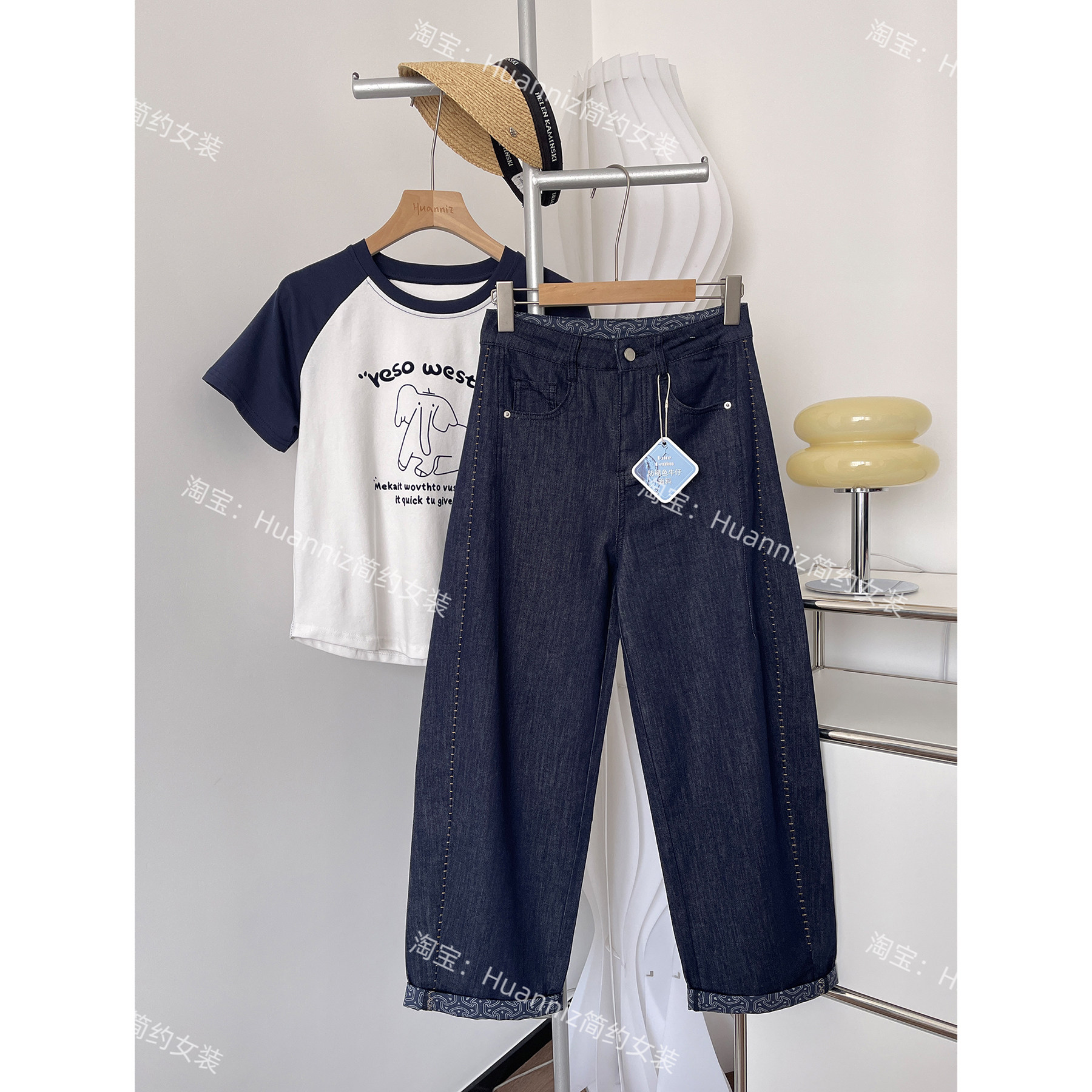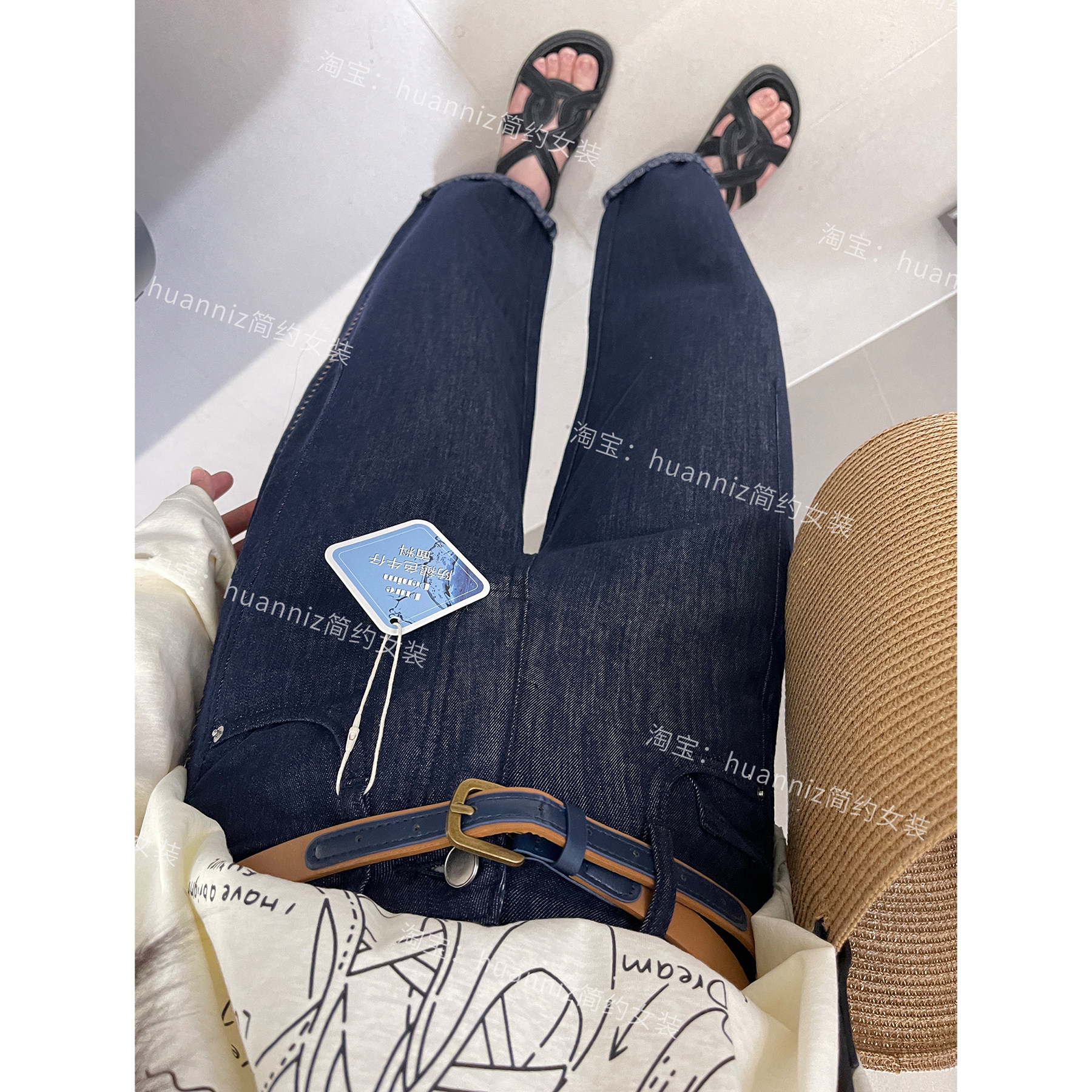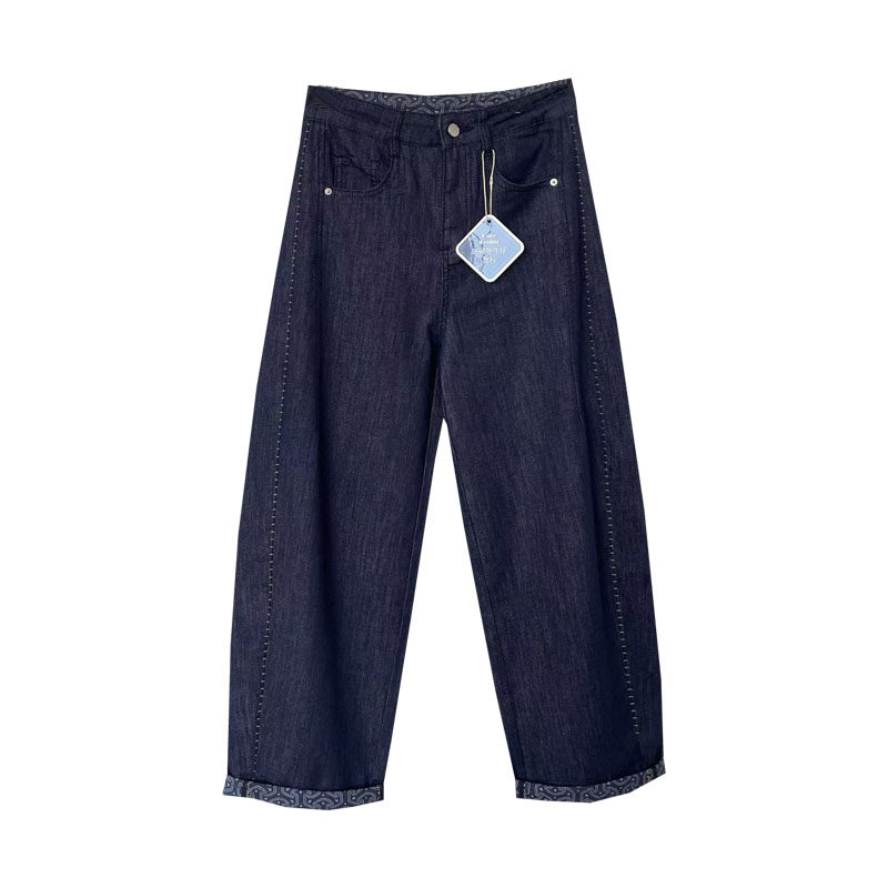 高端女裤防褪色普洗蓝显瘦弯刀牛仔裤夏季超薄气球哈伦裤直筒裤女