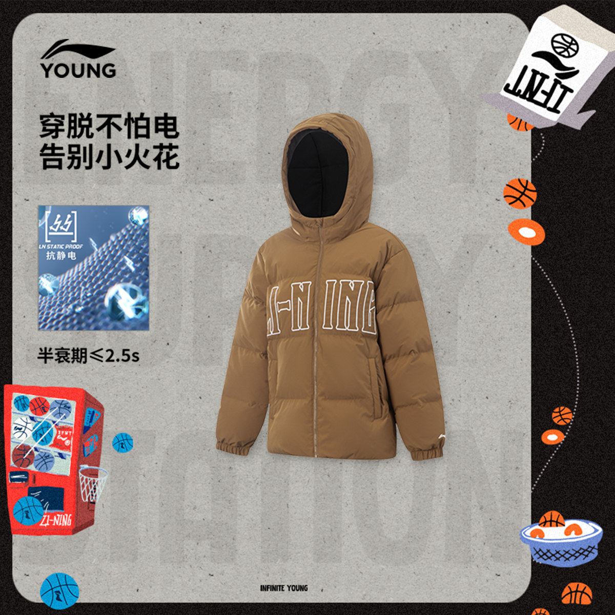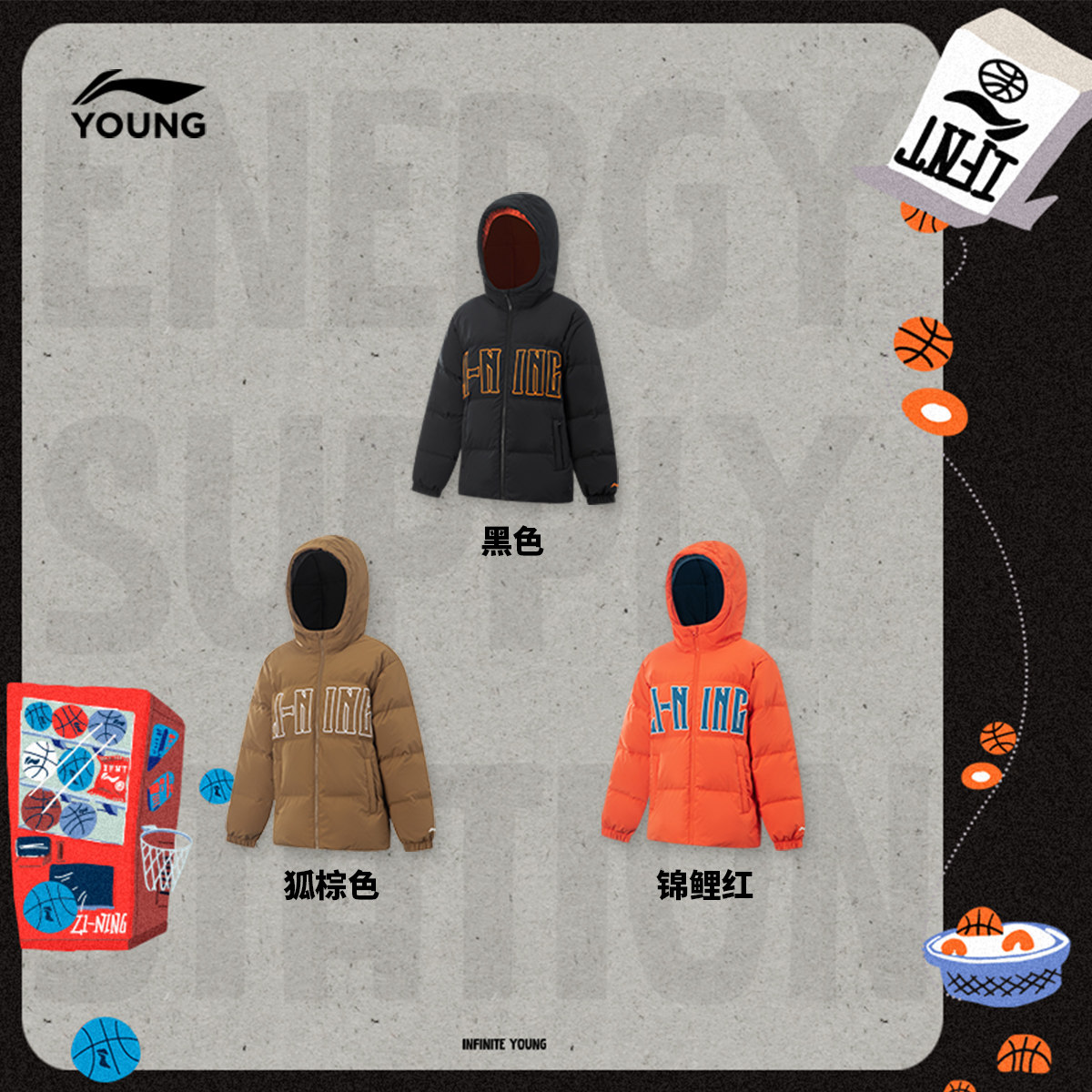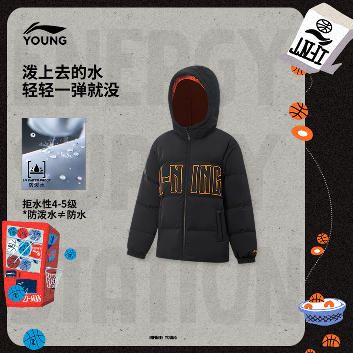 商场同款|李宁儿童短羽绒服男大童2025新款连帽宽松冬季鸭绒童装