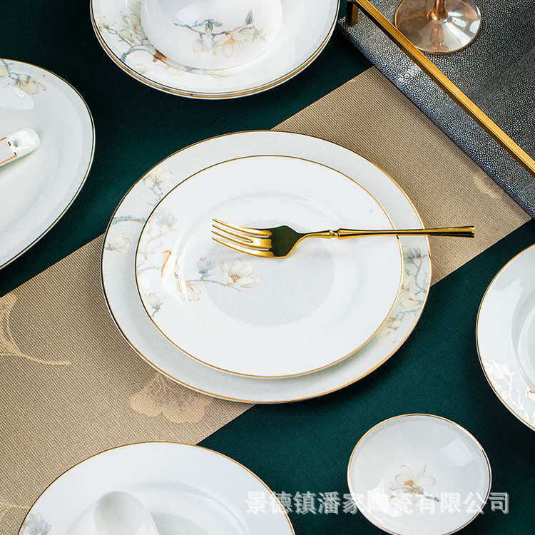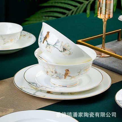 碗碟套装家用景德镇陶瓷器骨瓷餐具套装骨瓷轻奢中式碗盘组合送礼