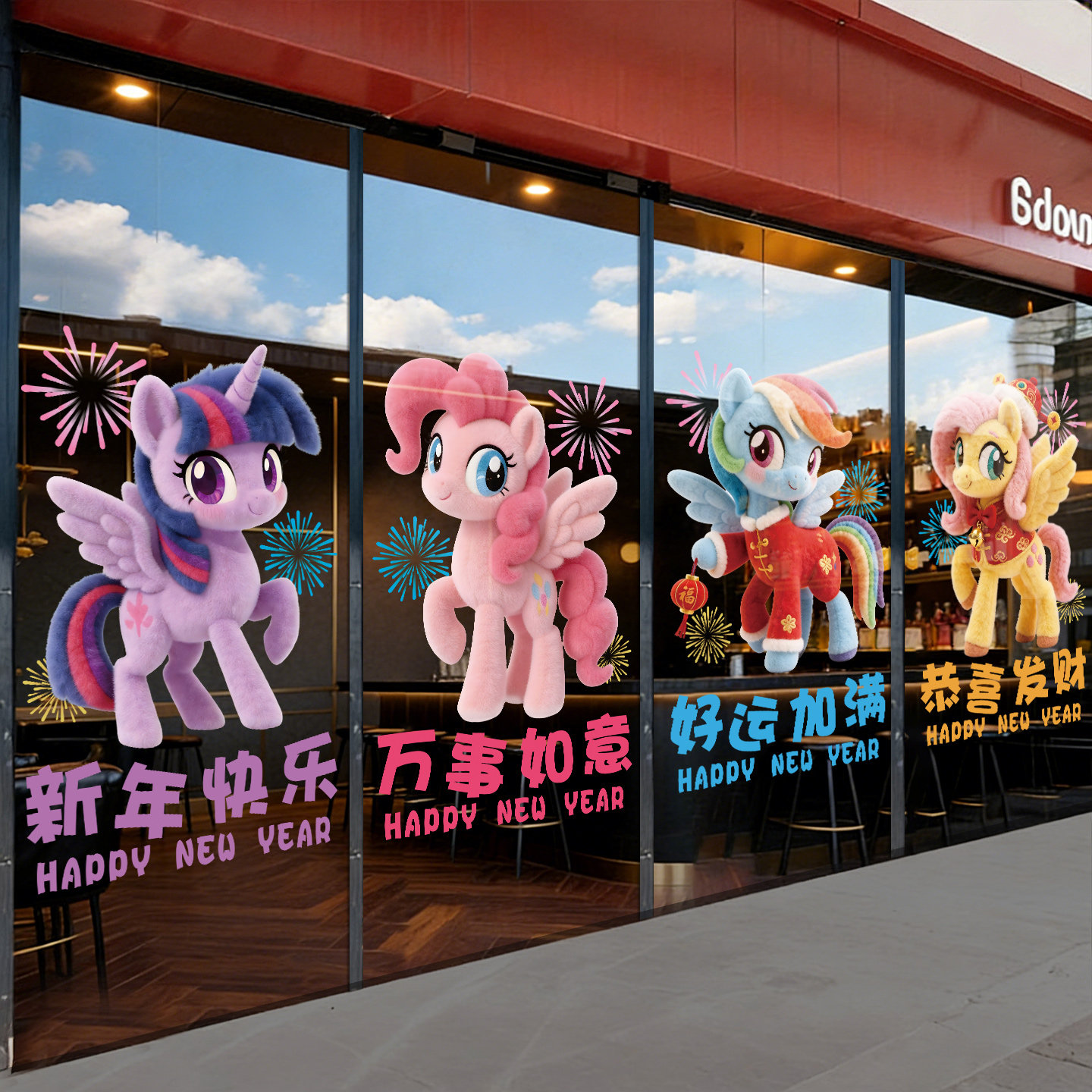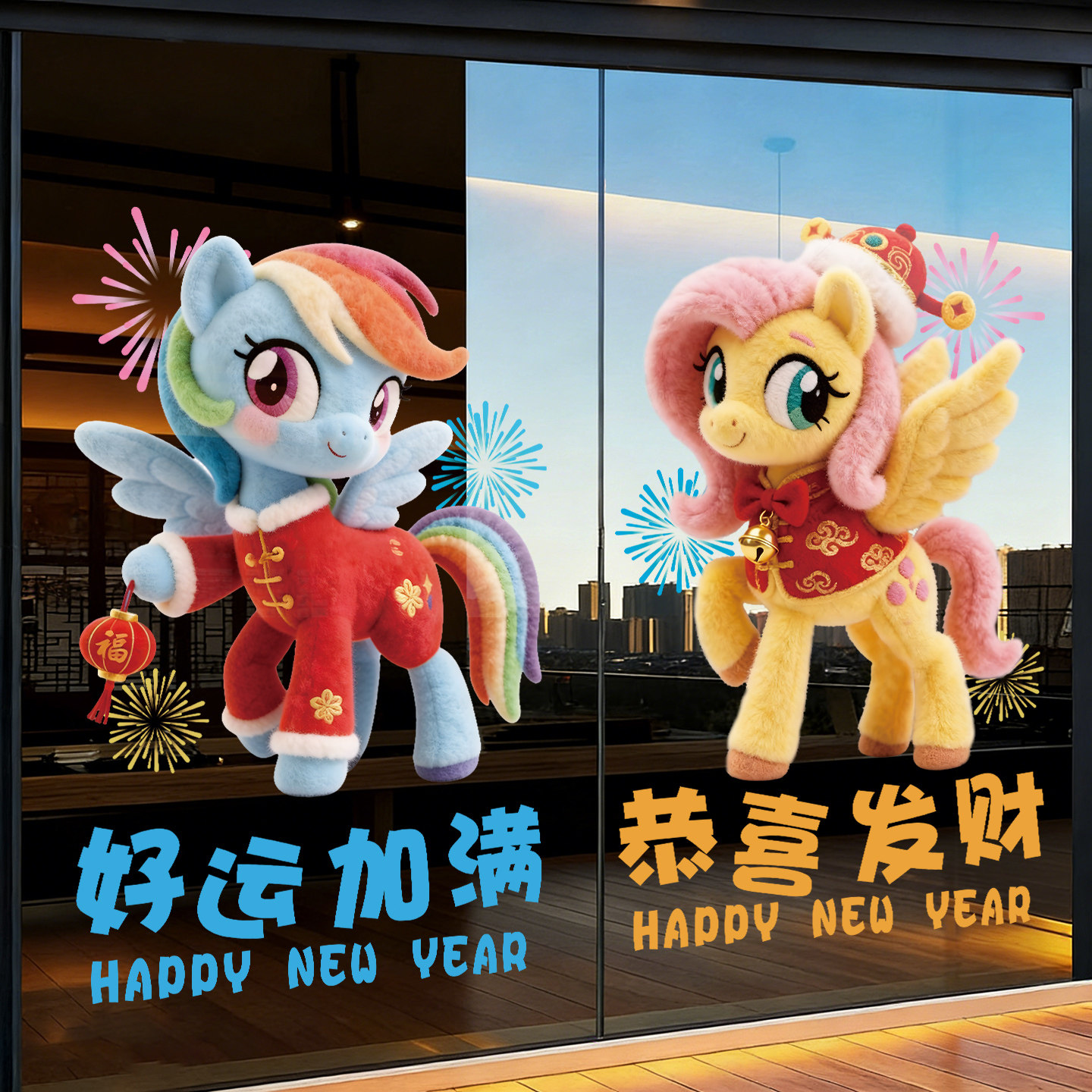 窗花2026新款马年新年小马宝莉春节5d氛围感装饰玻璃贴纸