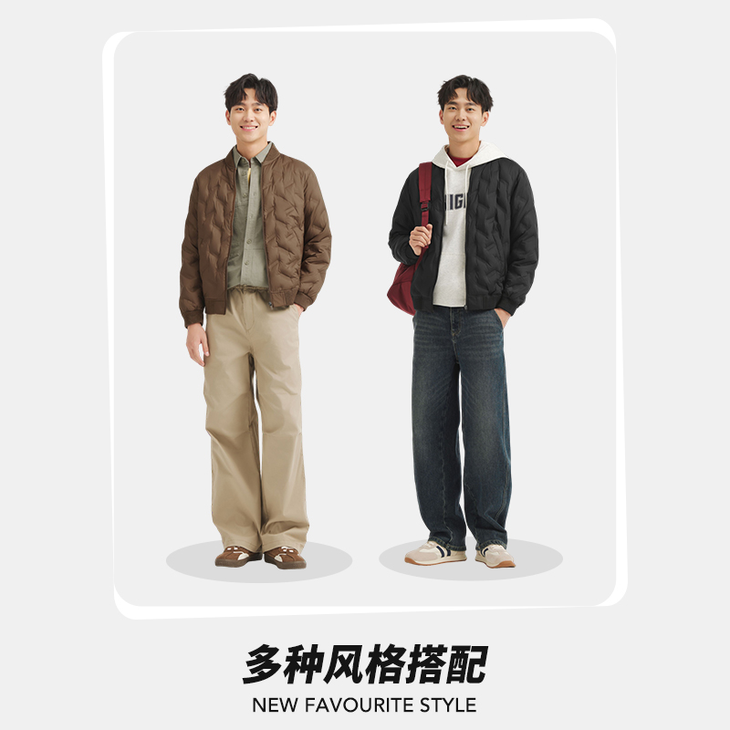 热风男士羽绒服棒球服羽绒外套2025年冬季新款轻薄压纹内搭羽绒服