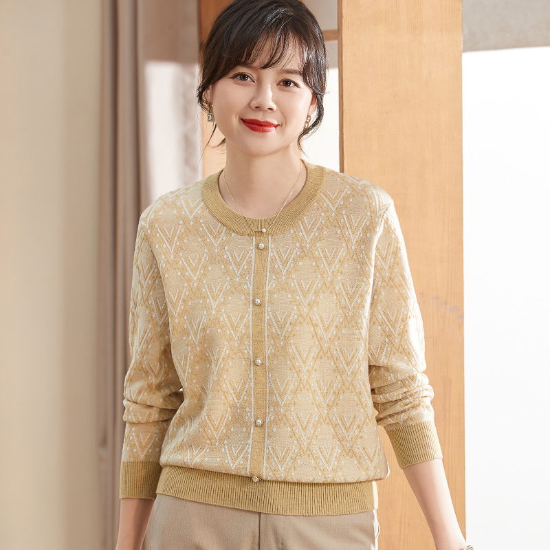 喜卉2025妈妈春秋新款简约针织上衣女中老年女秋装圆领洋气打底衫