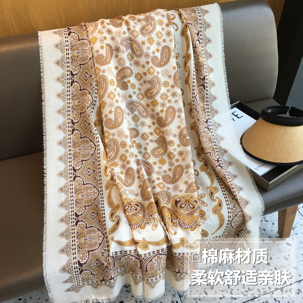 2025夏季新款民族风130cm大方巾棉麻围巾女超大防晒遮阳披肩丝巾