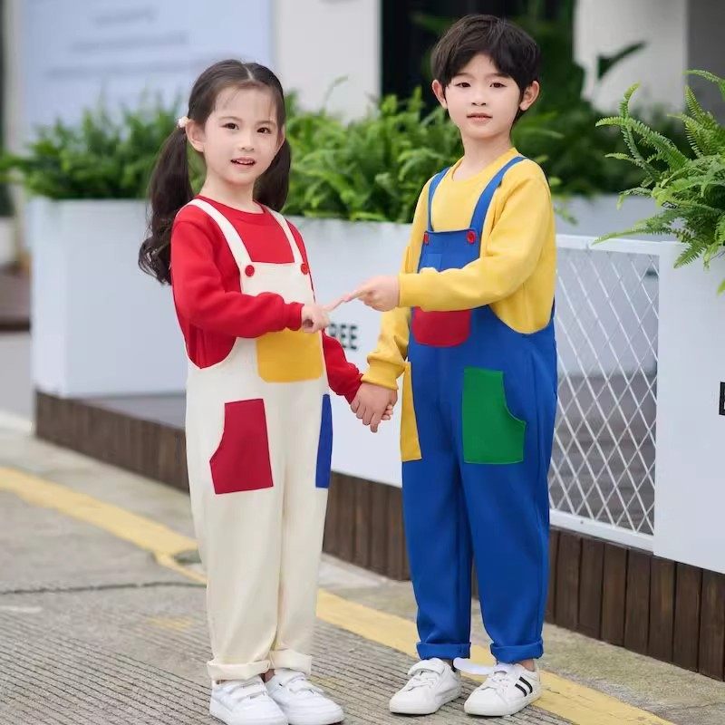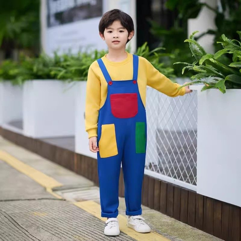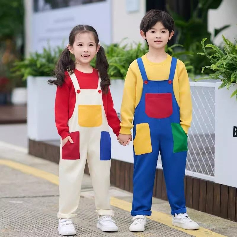 儿童春秋多巴胺穿搭背带裤套装啦啦队男童女童运动会开幕式演出服