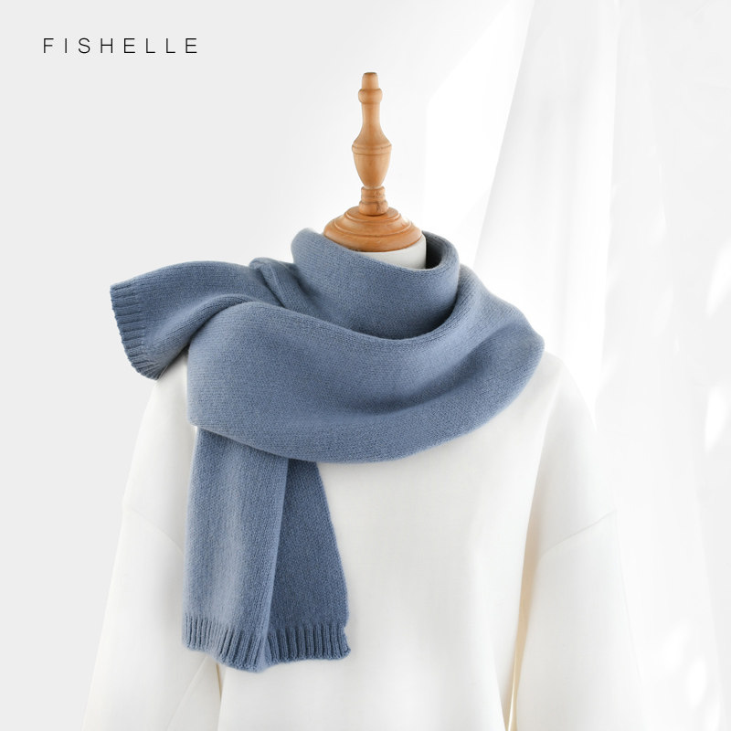 虞贝冬季韩版灰蓝白羊绒羊毛围巾