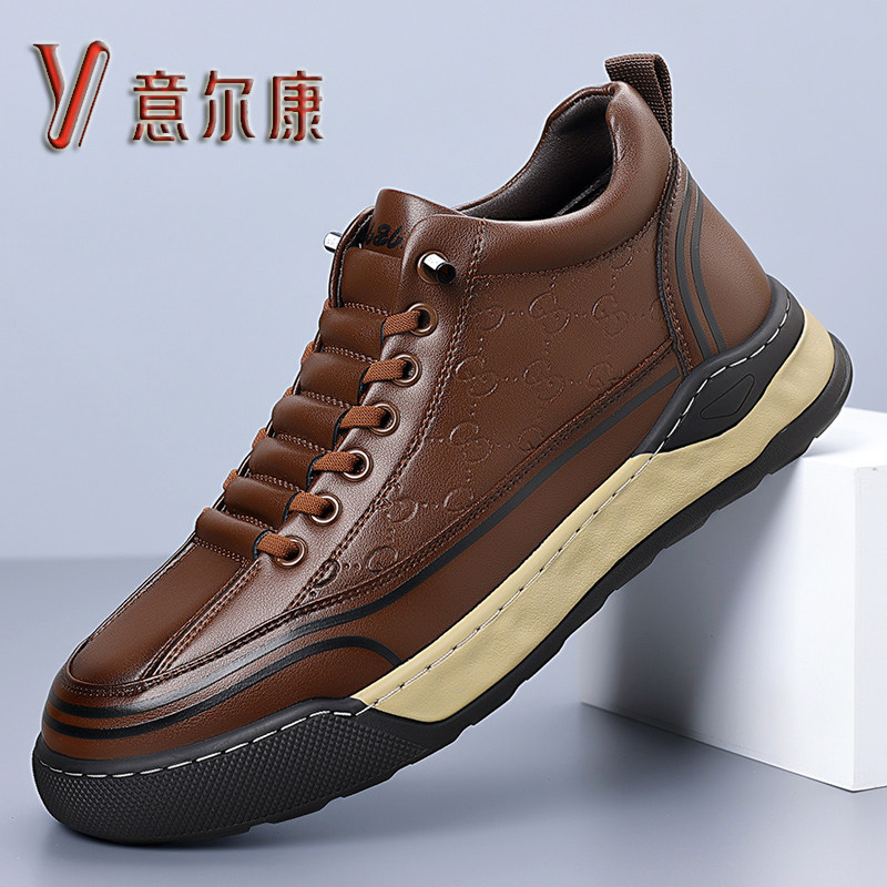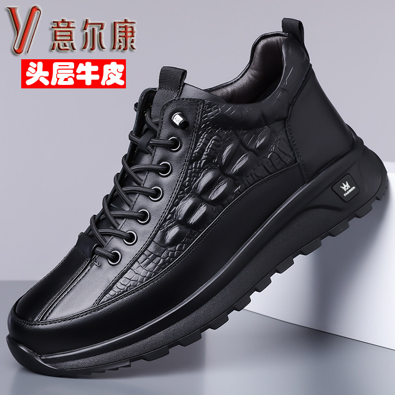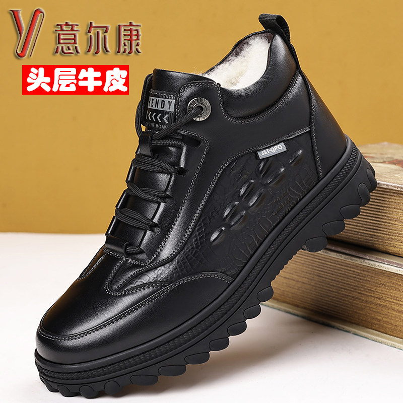 意尔康男鞋2025秋冬新款头层牛皮加绒保暖棉鞋休闲运动鞋高帮皮鞋