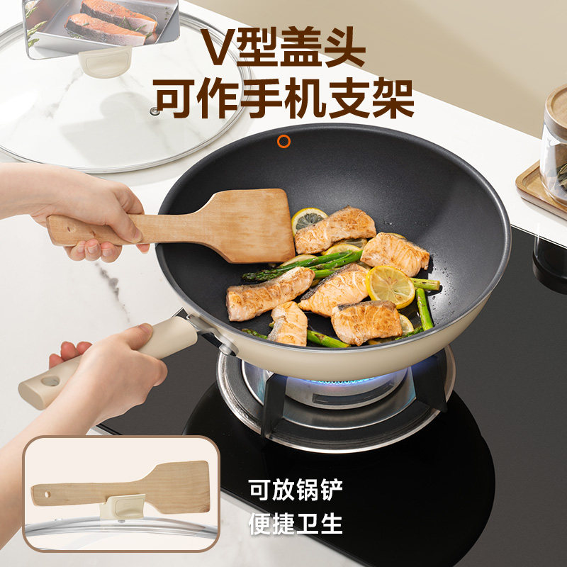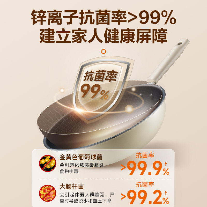 苏泊尔不粘锅炒锅抗菌家用炒菜锅电磁炉专用燃气煤气灶适用平底锅