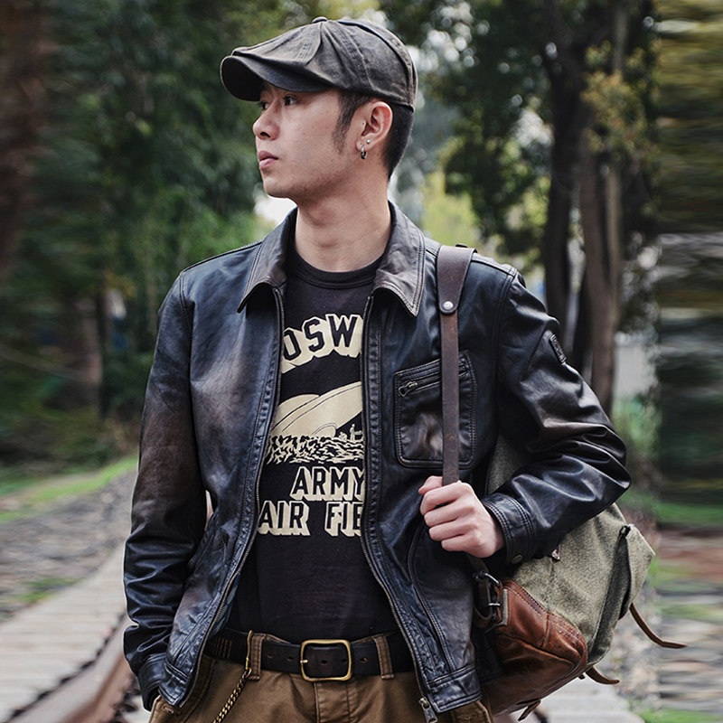 MCS源自万宝路秋季91-B美式复古皮衣牛皮革工装真皮短款皮衣夹克