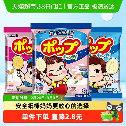 不二家牛奶棒棒糖香醇乳酸草莓芒果白桃蓝莓味46g*3袋儿童糖果