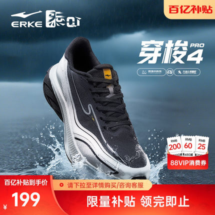 穿梭4pro鸿星尔克防泼水跑步鞋冬季新款运动鞋男鞋黑男士减震跑鞋