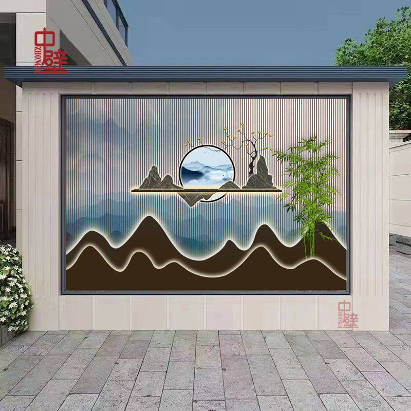 室外庭院迎门墙瓷砖背景墙公司大型围墙现代新中式壁画岩板影背墙