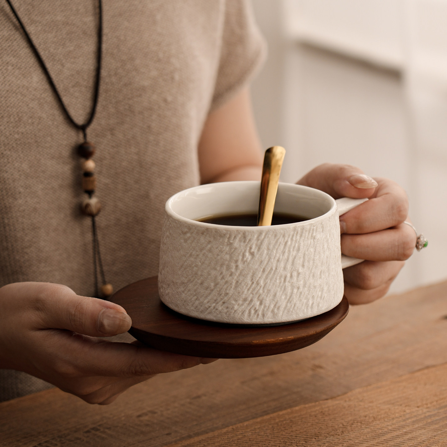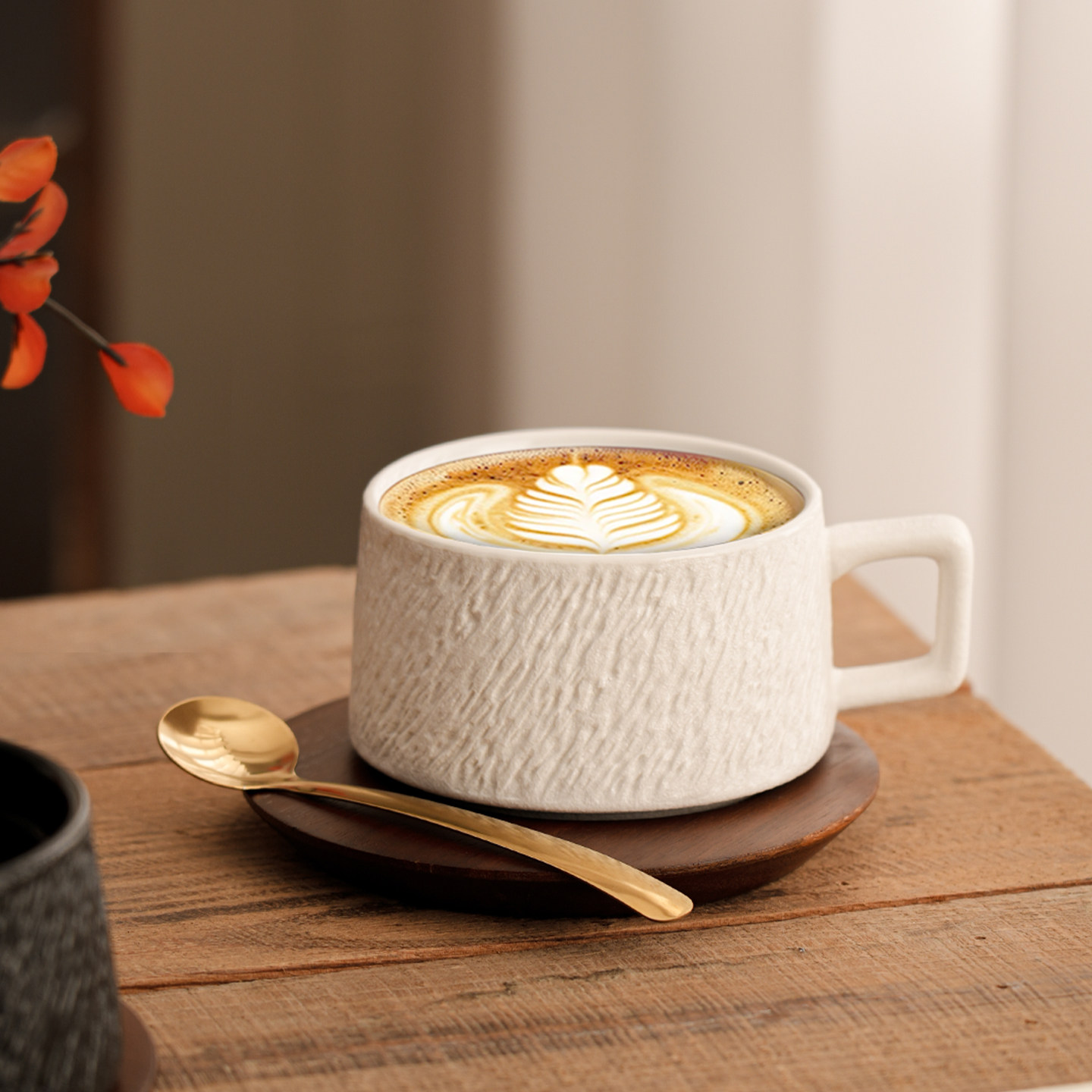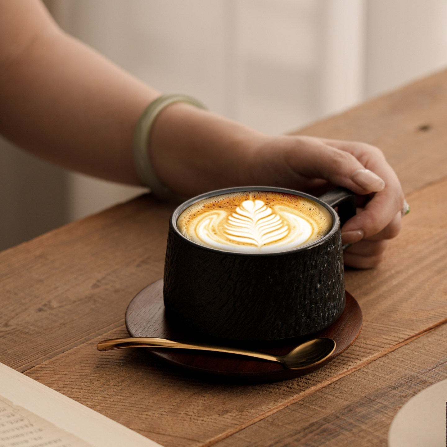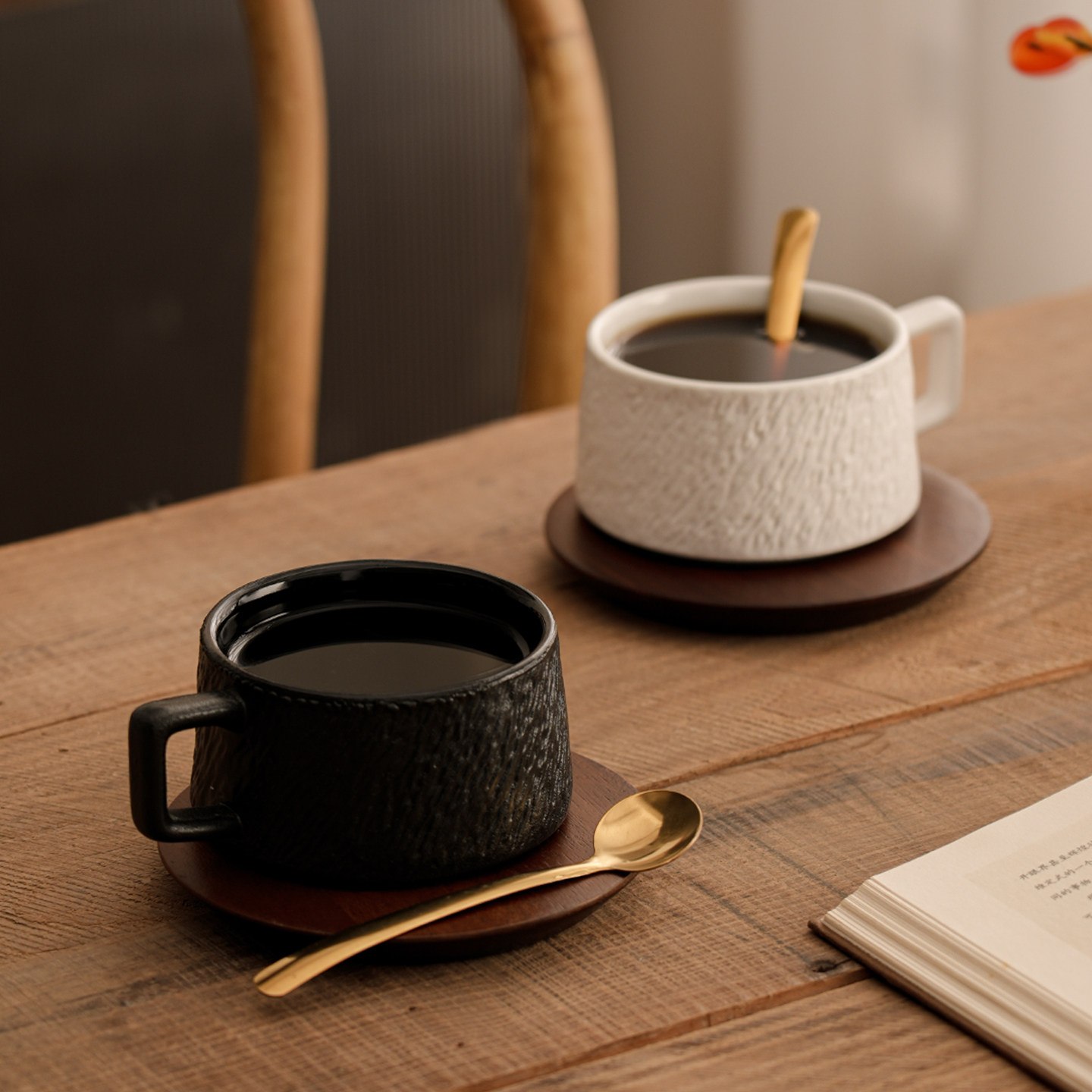 复古咖啡杯碟套装浓缩复石纹杯拿铁拉花杯勺家用女士个人专用杯