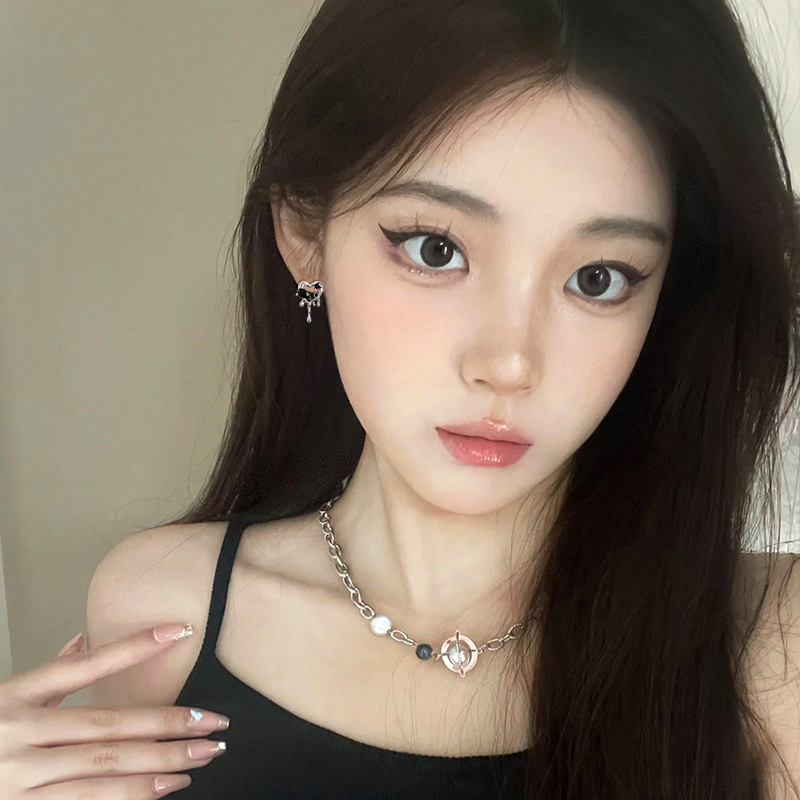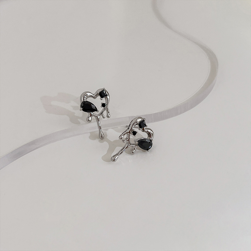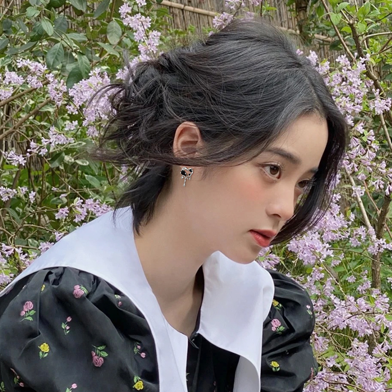黑色爱心耳环女士小众独特气质纯银耳钉耳坠法式森系精致夏天耳饰