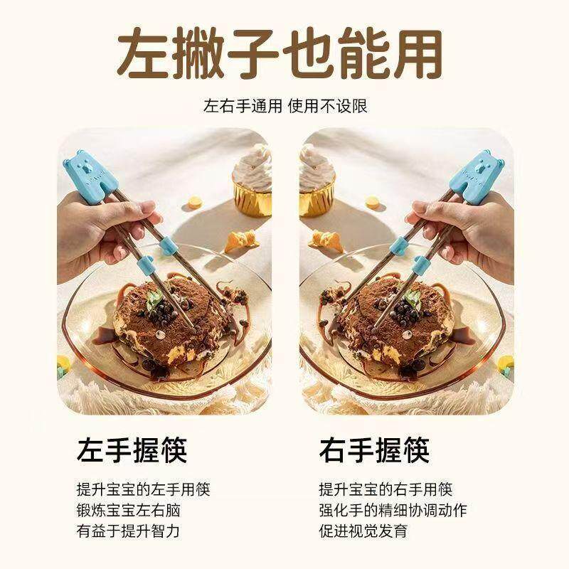 宝宝训练筷实木筷子家用学习筷1-7岁吃饭辅助筷不锈钢回弹练习筷