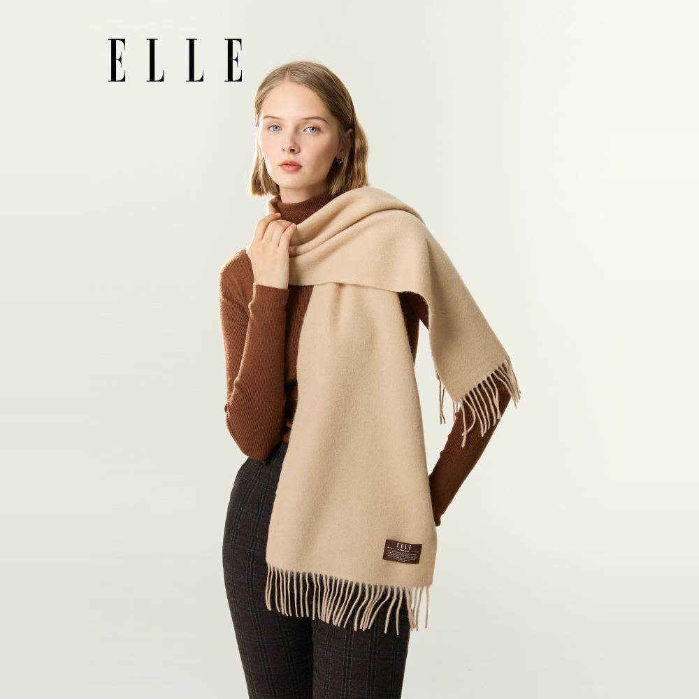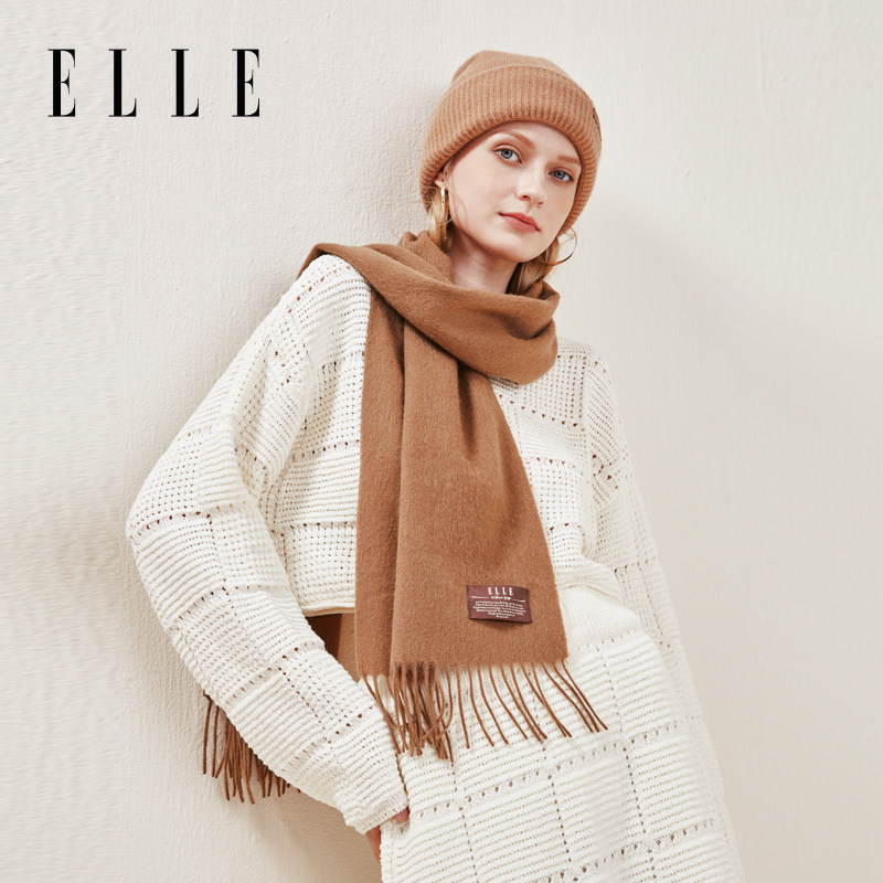 ELLE羊毛围巾女士秋冬季/彩虹棉花糖流苏围脖/加绒保暖分指手套