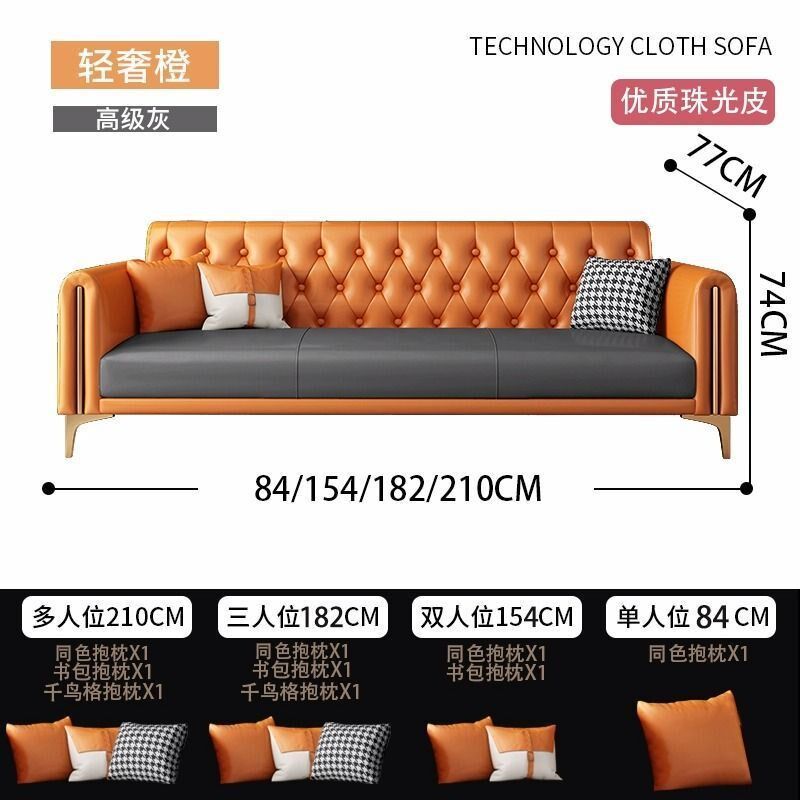 美式沙发客厅小户型轻奢现代三人位直排办公室接待科技布皮艺沙发