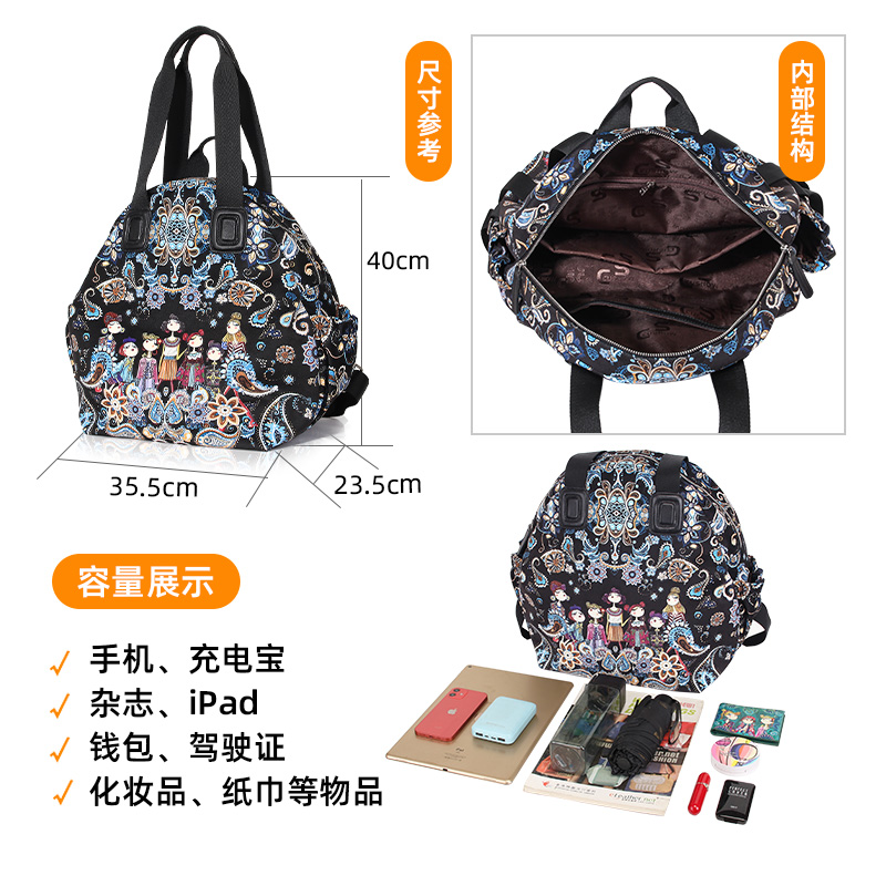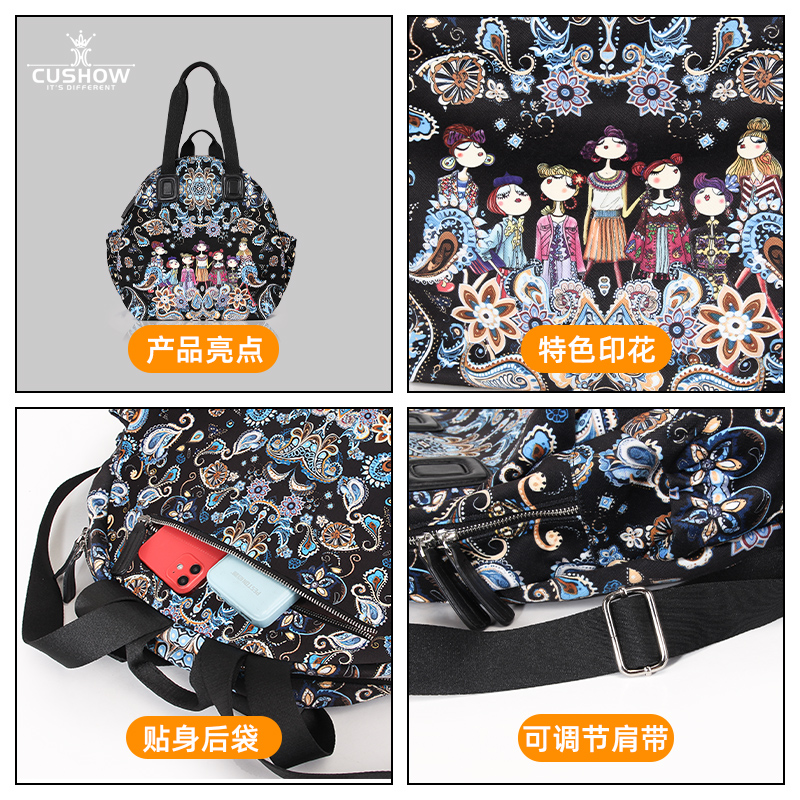 卡秀轻便大容量印花布包2025新百搭单肩双肩女包多用手提旅行背包