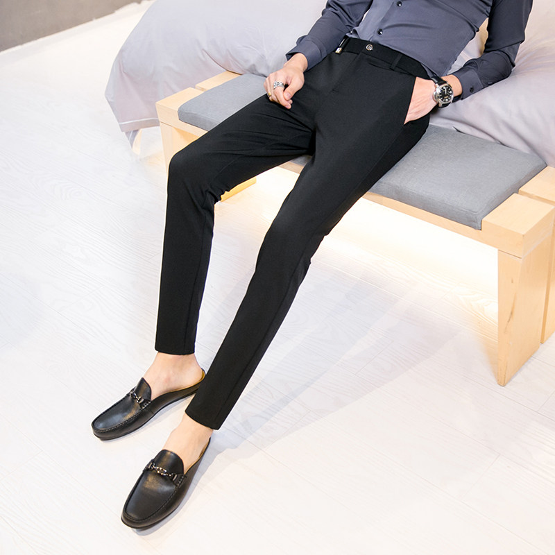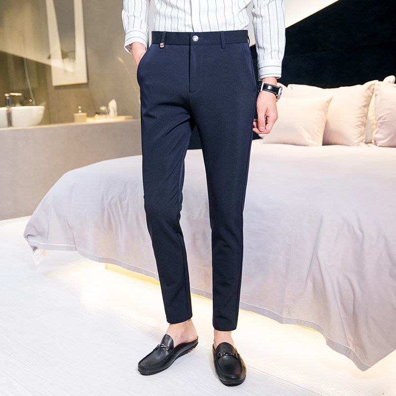 夏季裤子男韩版潮流九分裤男士西装裤修身休闲垂感西裤9分小脚裤