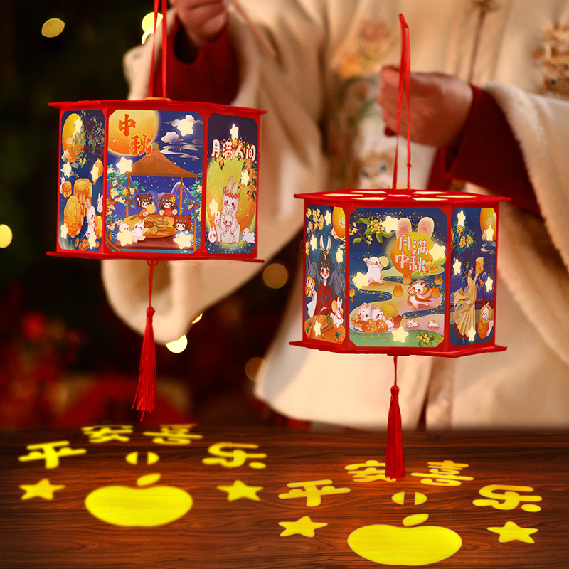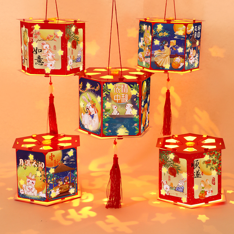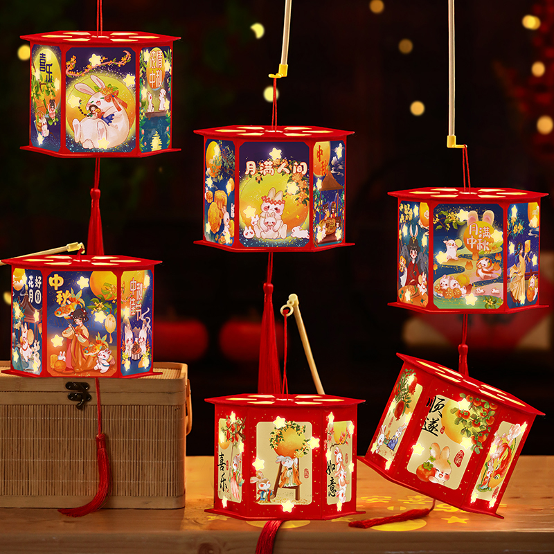 中秋节2025新款儿童手提实用兔子创意灯笼手工diy制作装饰走马灯