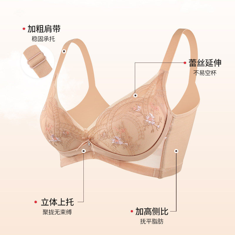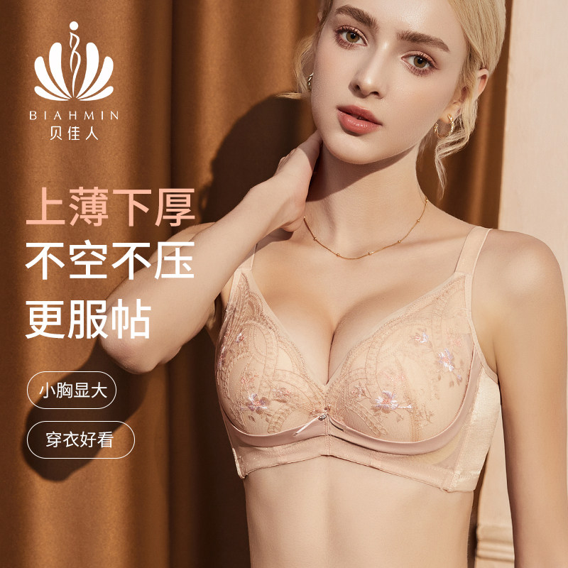 贝佳人小胸显大聚拢文胸3/4中厚杯上托圆润性感刺绣内衣BW912203