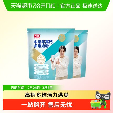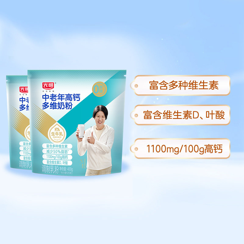 光明奶粉成人中老年牛奶粉高钙多维400g*2袋营养品早餐袋装