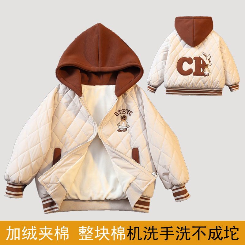 儿童加绒棉服秋冬款新款女童棒球服男童棉衣夹棉外套加厚洋气冬装