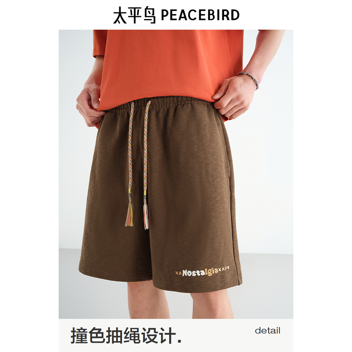 太平鸟男装休闲裤25夏季新款宽松薄款撞色抽绳休闲中短裤运动裤潮