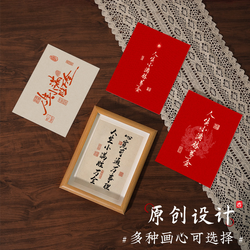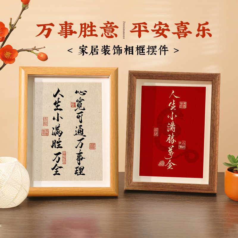 人生小满胜万全中式励志字画横款相框摆台入户玄关客厅摆件装饰品