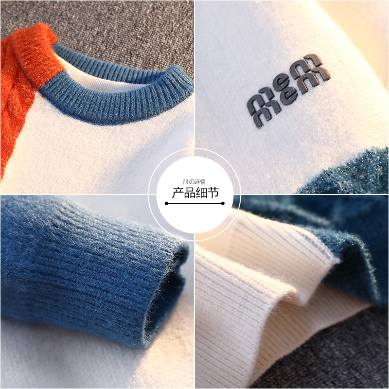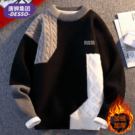 唐狮集团DESSO秋冬季男加绒加厚毛衣保暖拼接打底新款圆领针织衫