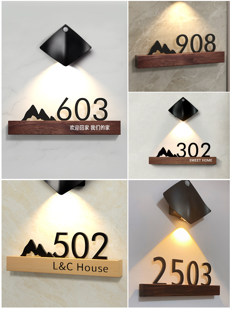 门牌定制门牌号码牌家用轻奢创意入户门装饰带灯门牌号酒店包厢民宿宿舍房间号发光数字门牌个性门贴挂牌订制