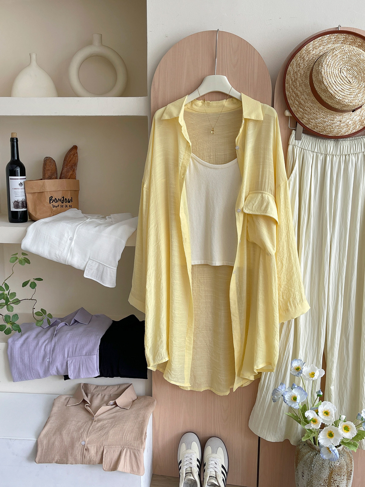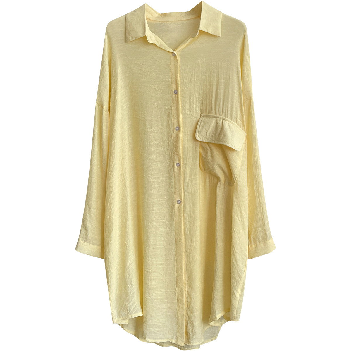日韩系慵懒冰丝麻棉中长款防晒衬衫女夏长袖度假风空调外百搭上衣