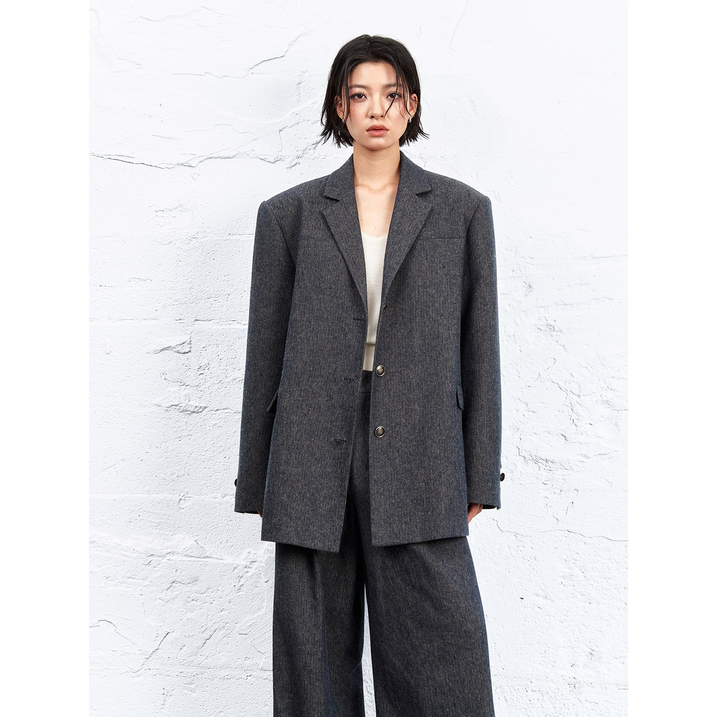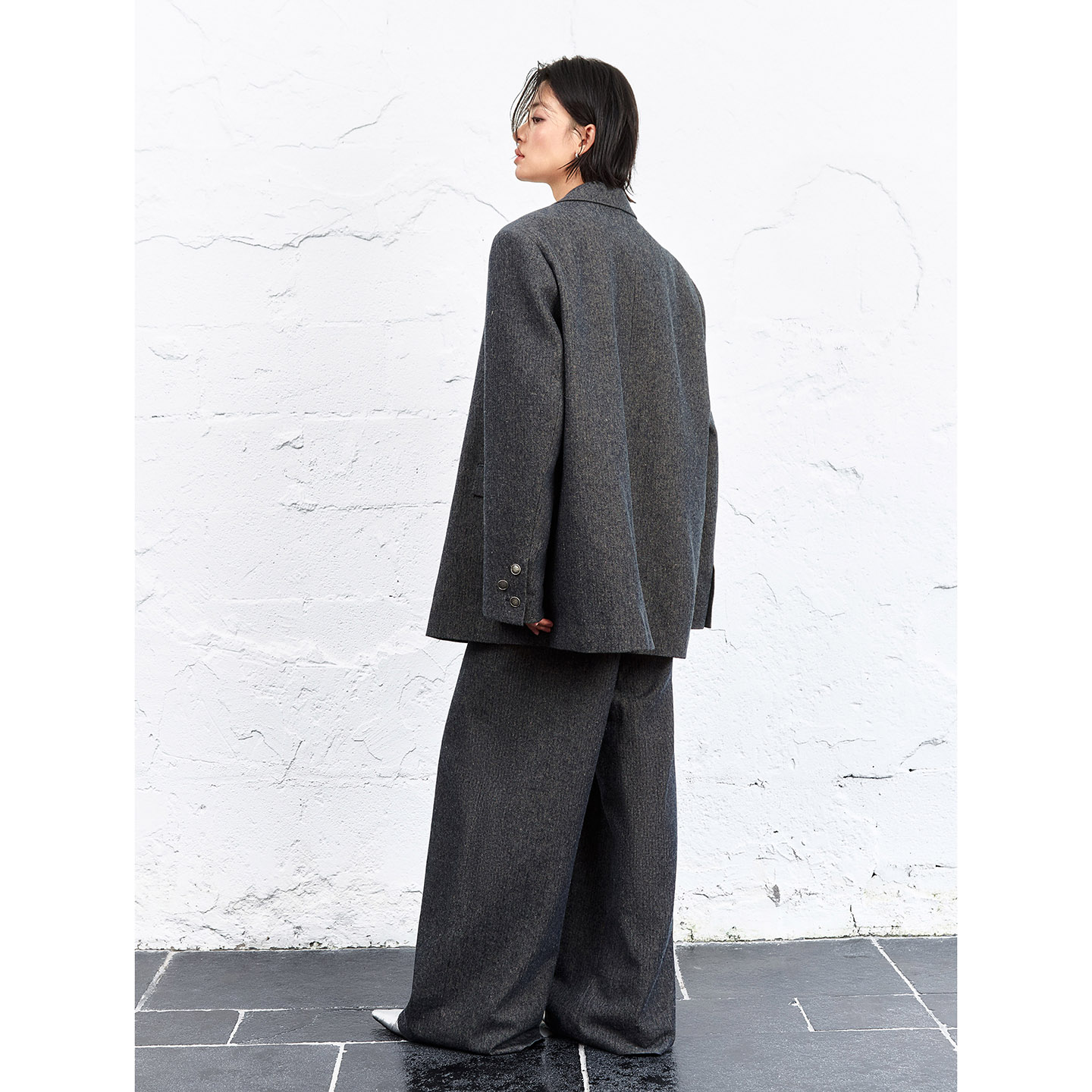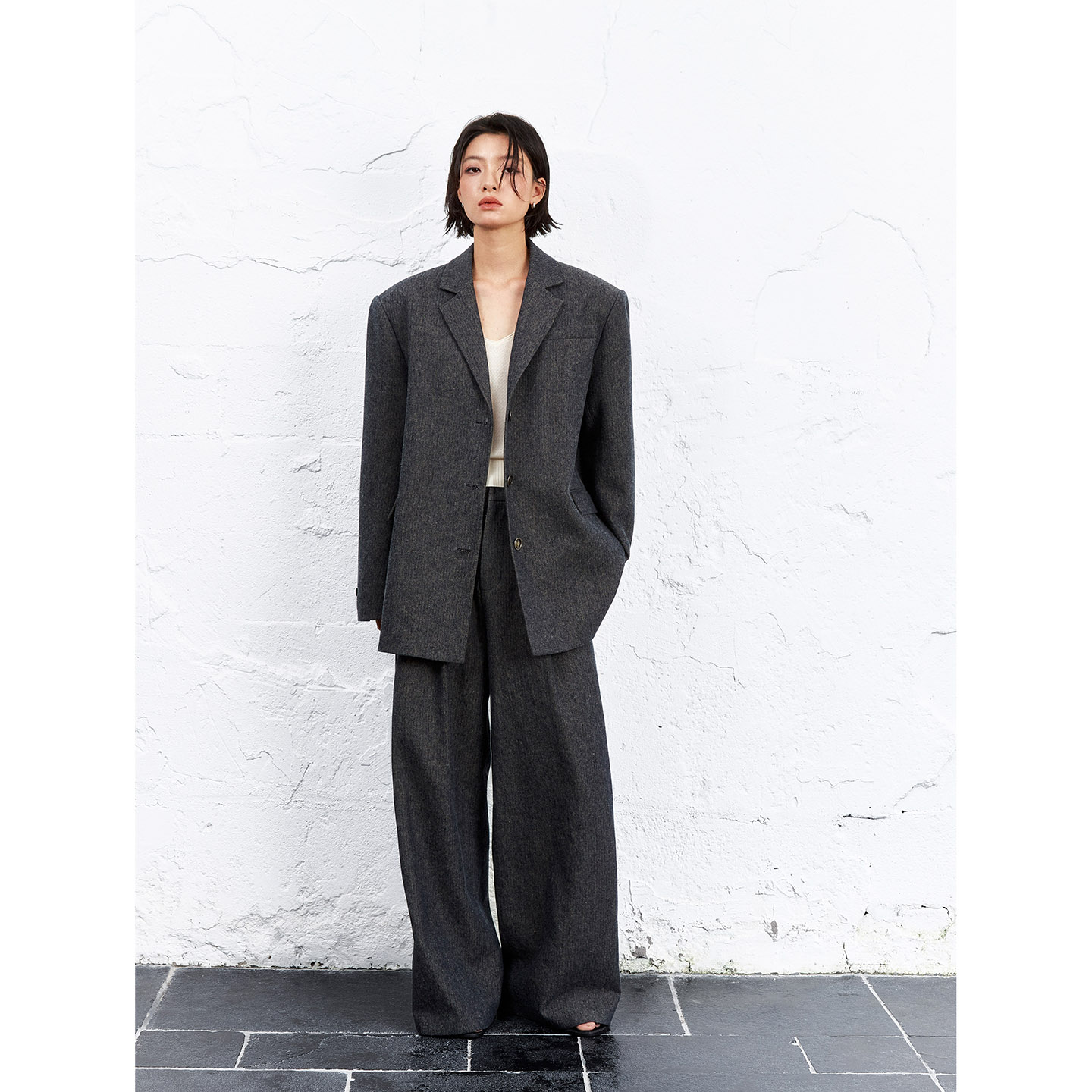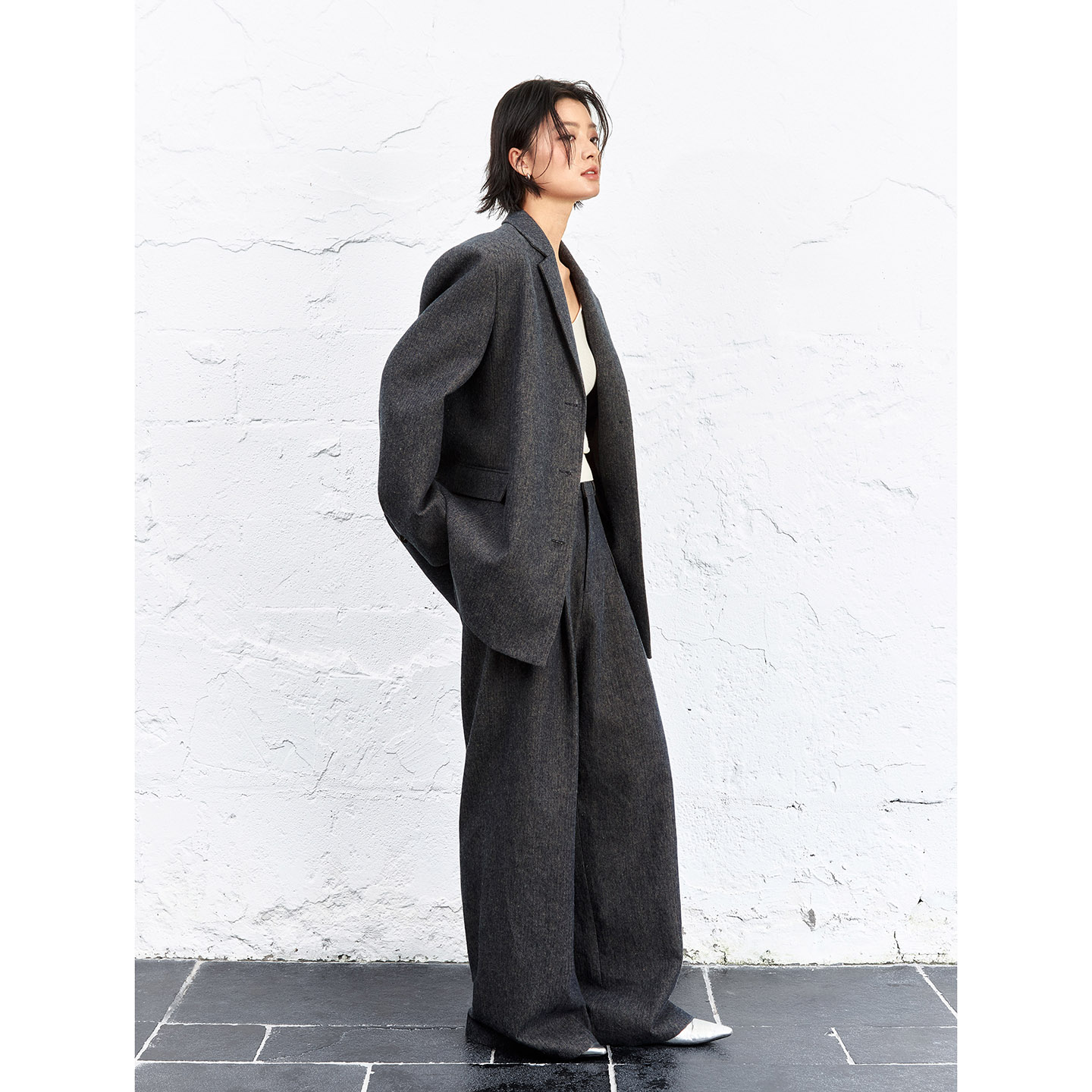 洛边 大女主 原创设计复古西装外套宽松高腰阔腿裤西服上衣两件套