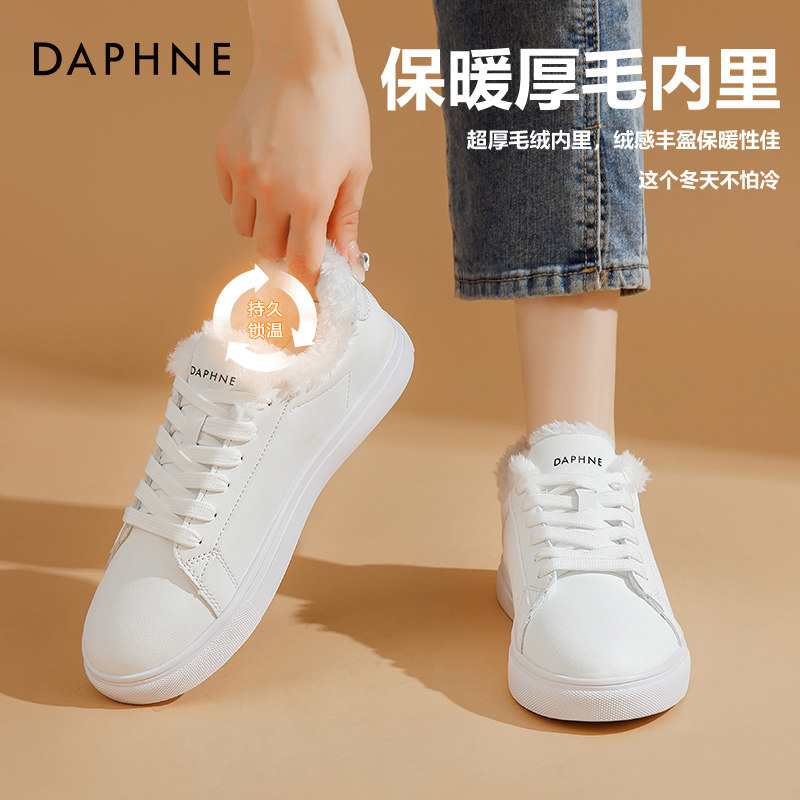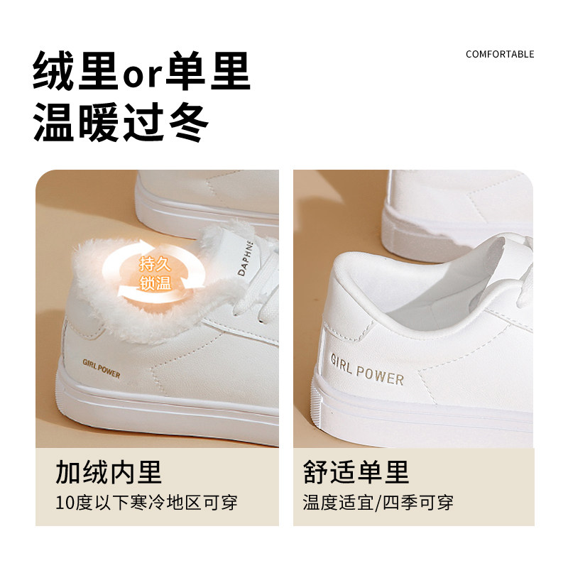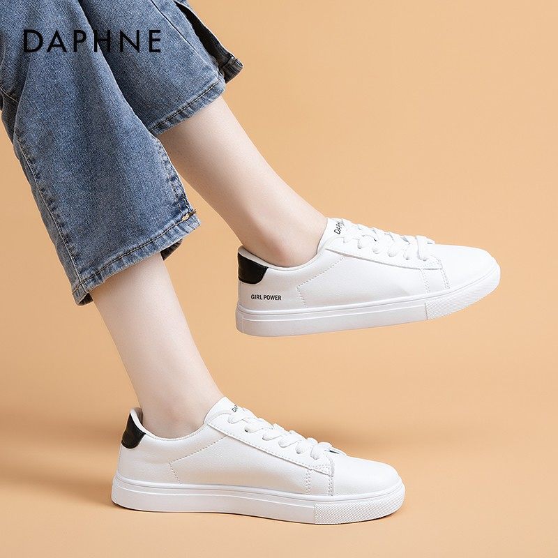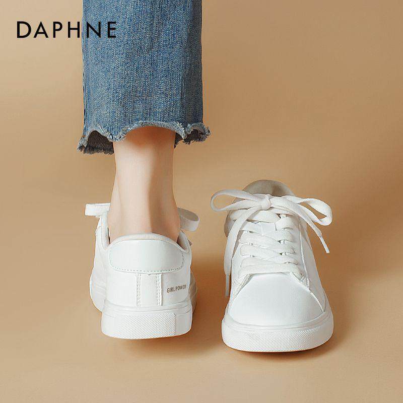 达芙妮小白鞋女2025新款秋冬季爆平底百搭休闲板鞋白色皮面配裙子
