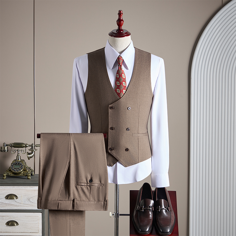绵羊毛西服套装男式时尚新郎结婚礼服高定商务休闲西装马甲裤子