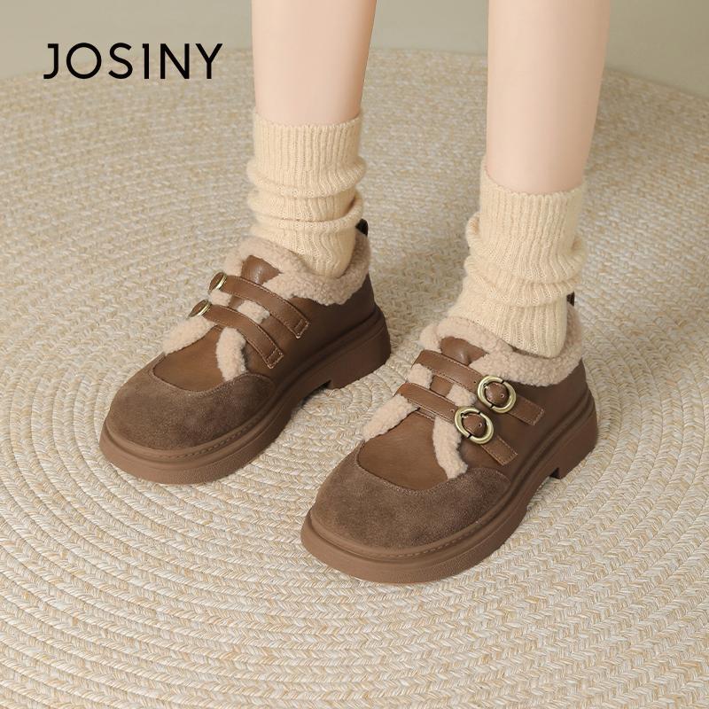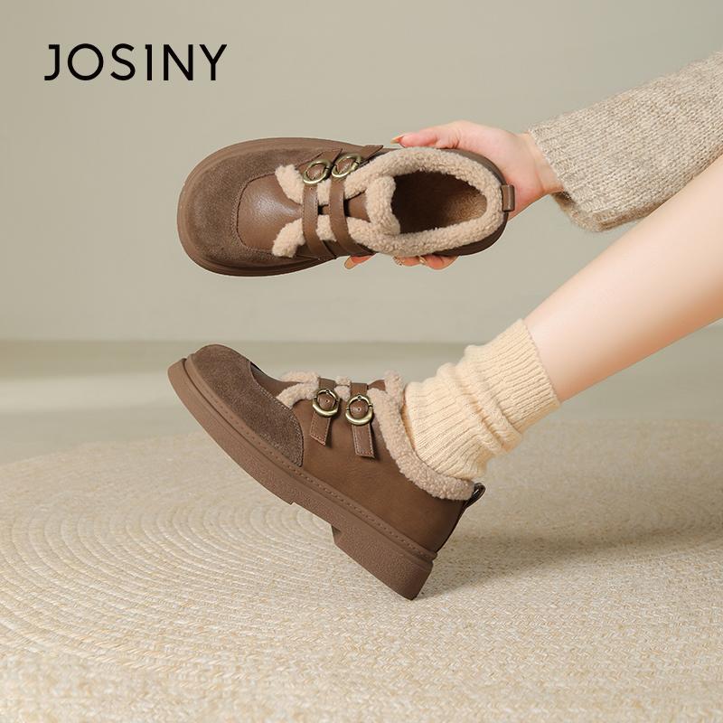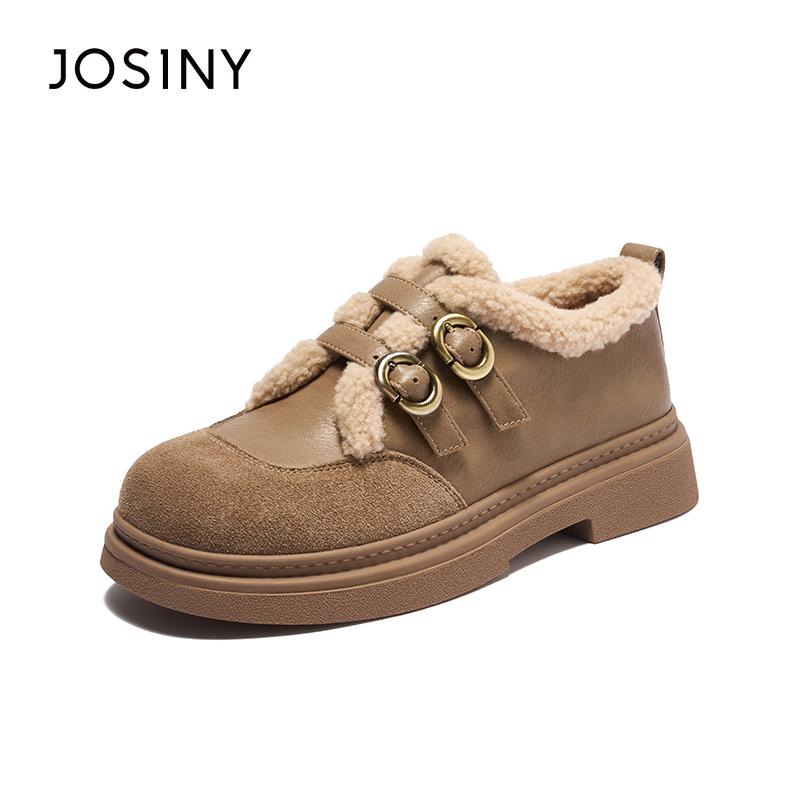 卓诗尼低帮雪地靴女2025冬季新款加绒加厚保暖毛毛乐福鞋勃肯棉鞋