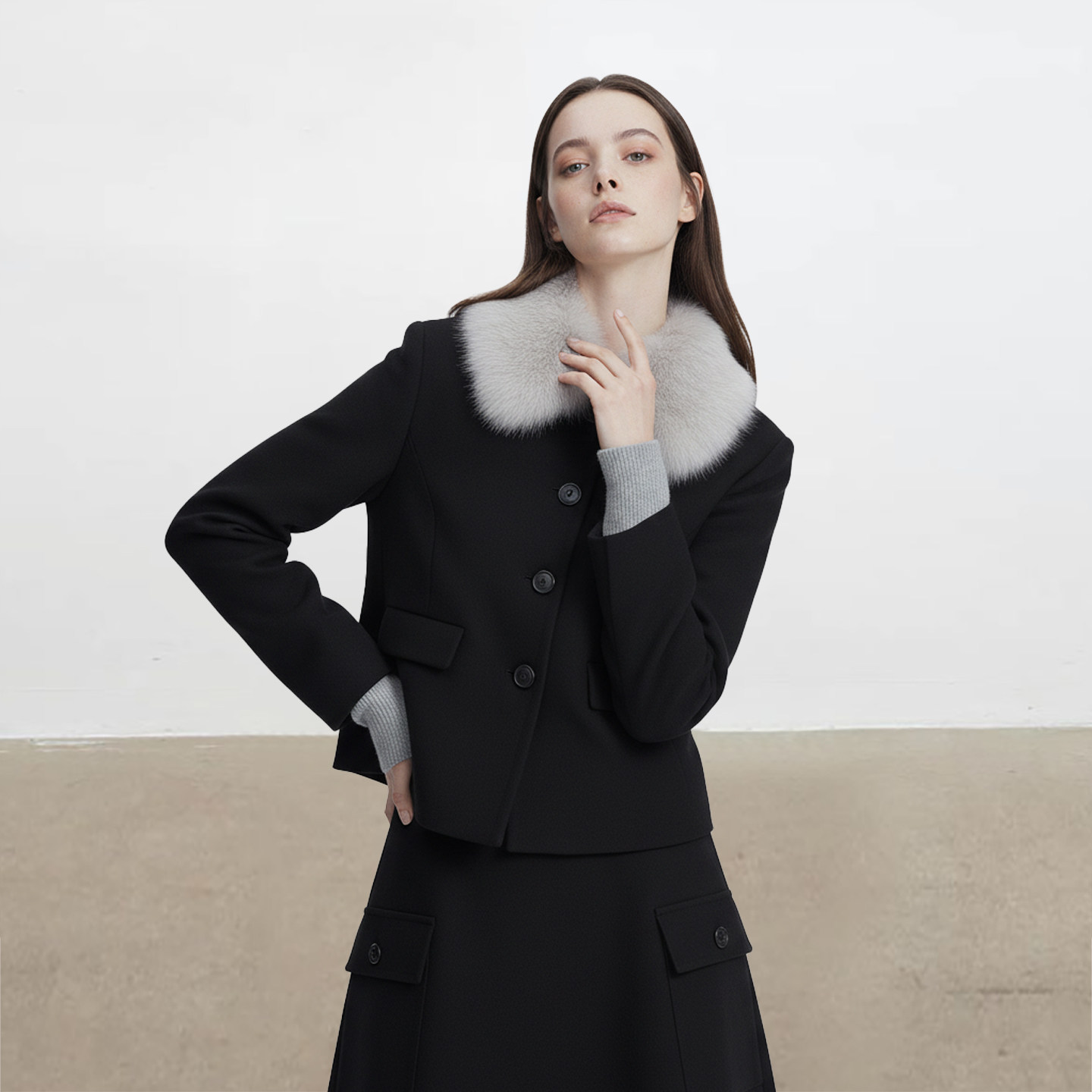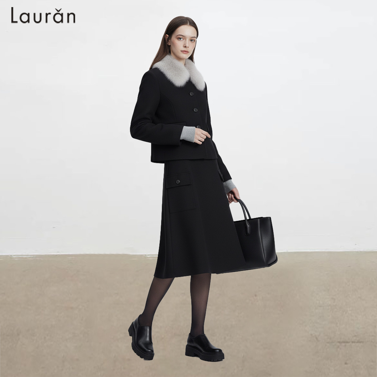 现货/Lauran*设计感毛领毛呢外套