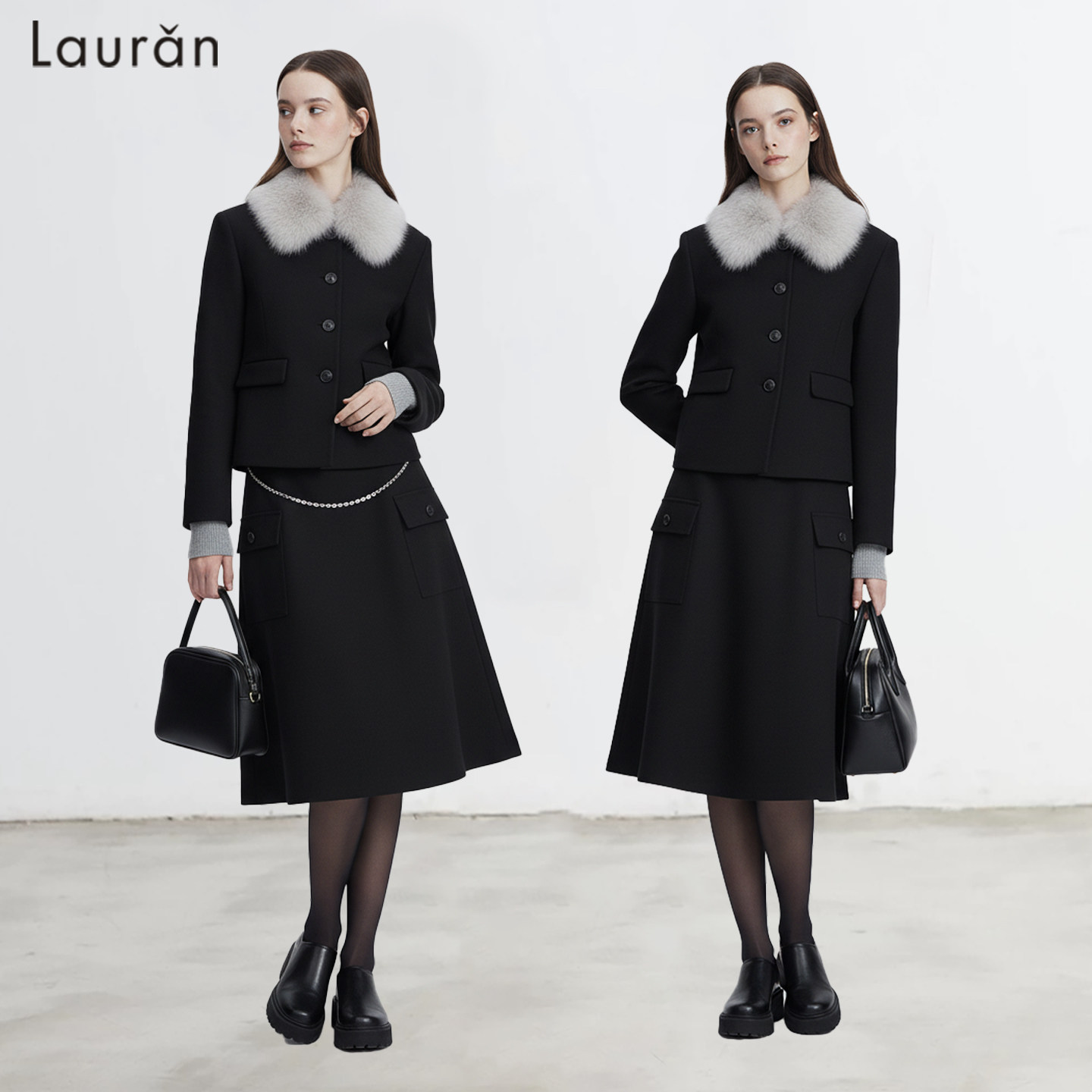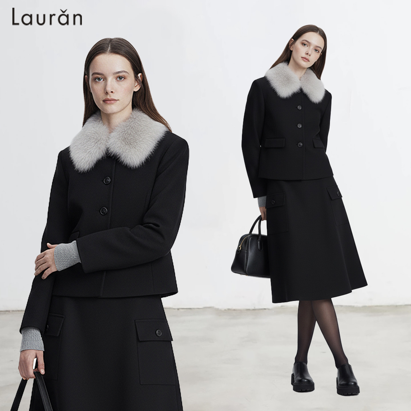 Lauran*复古调性毛呢短外套女2025法式气质套装设计感毛领小西装