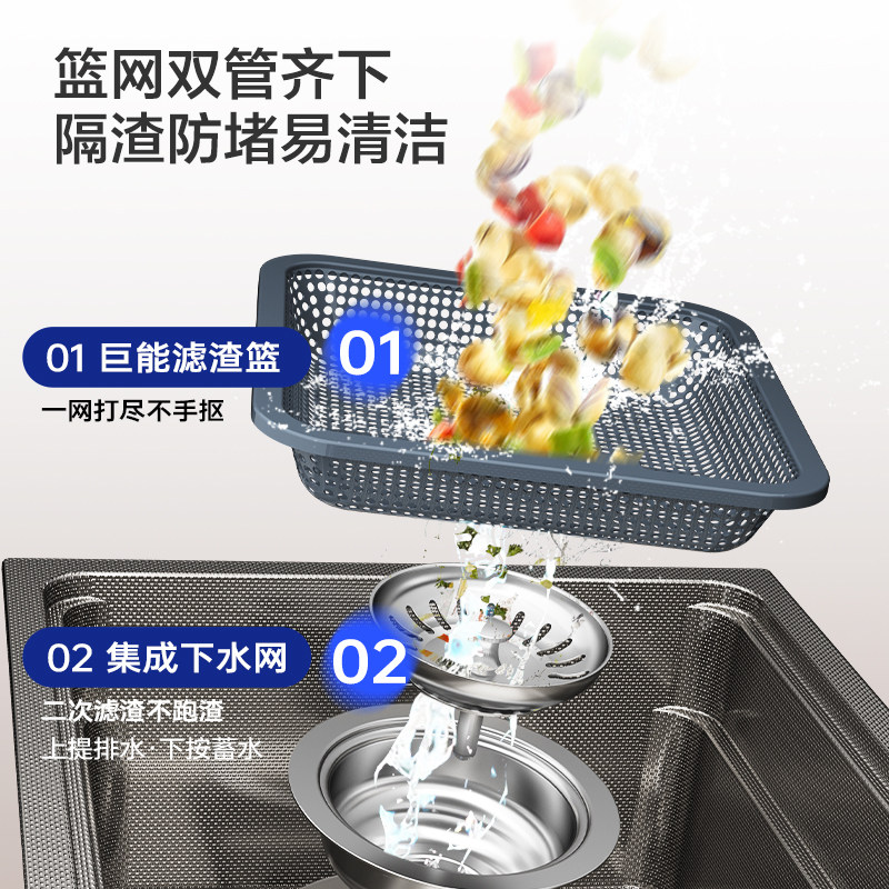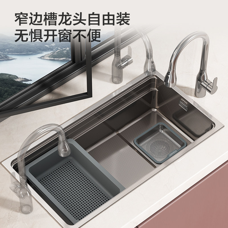 九牧大单槽纳米304不锈钢水槽双轨道淘洗菜盆洗碗池集渣窄边厨房